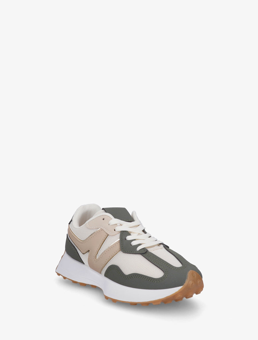 Ces baskets bimatière allient toile respirante et effet nubuck pour un style urbain affirmé. Leur empiècement en maille assure confort et légèreté, tandis que le détail irisé apporte une touche contemporaine. La semelle plate de 3 cm garantit une stabilité optimale au quotidien. Dotées de lacets et de bouts ronds, elles se marient facilement avec vos tenues décontractées. Le simili cuir de qualité offre une alternative élégante et facile d'entretien. Parfaites pour vos journées actives en ville comme pour vos moments détente, ces baskets vert militaire s'imposent comme un indispensable de votre garde-robe.