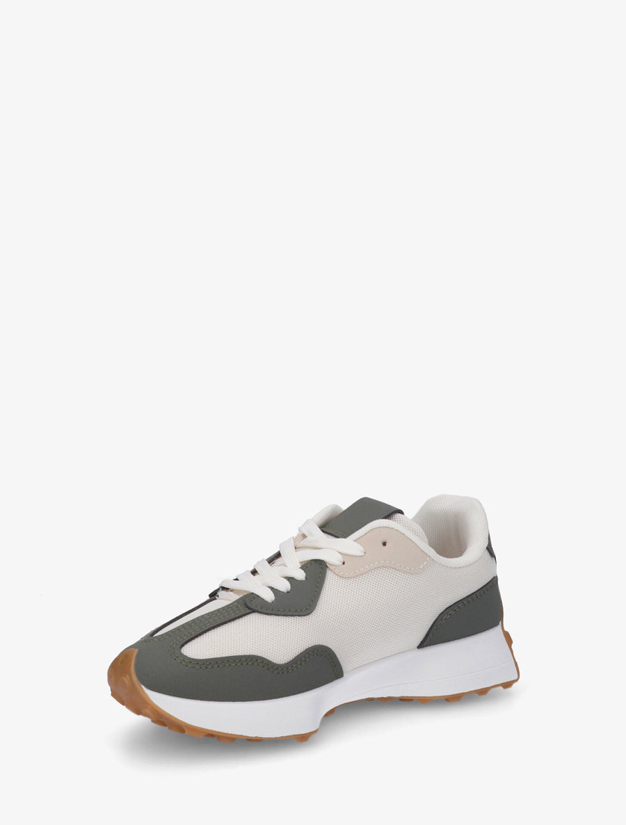 Baskets bimatière toile et nubuck - Vert militaire