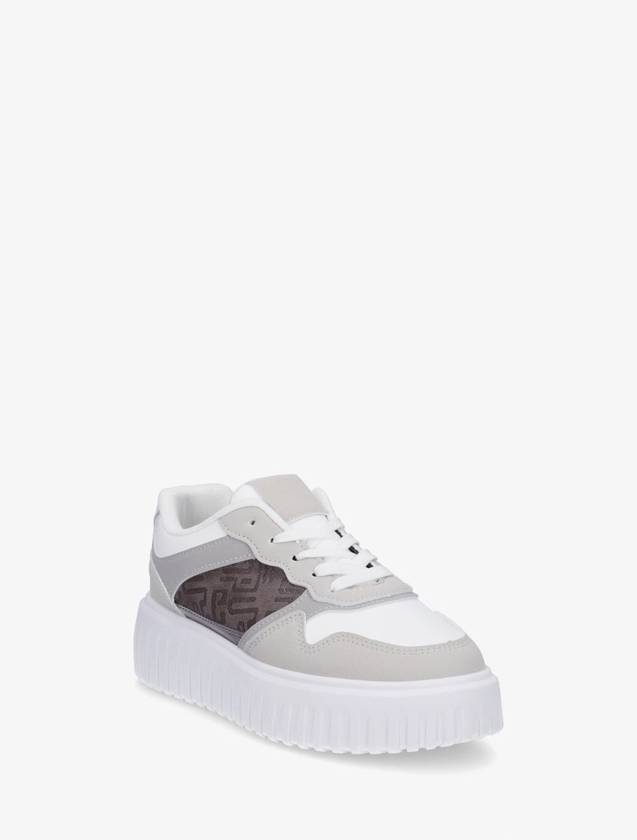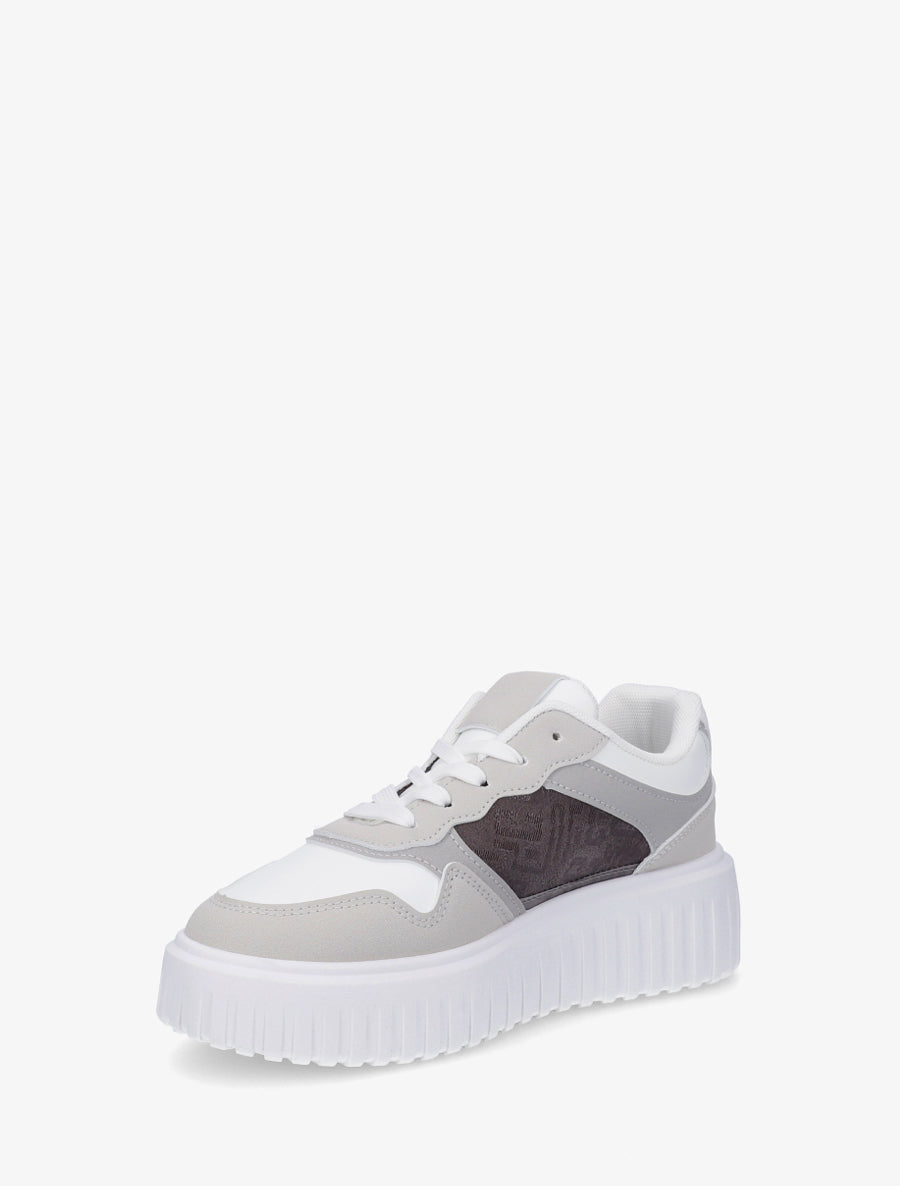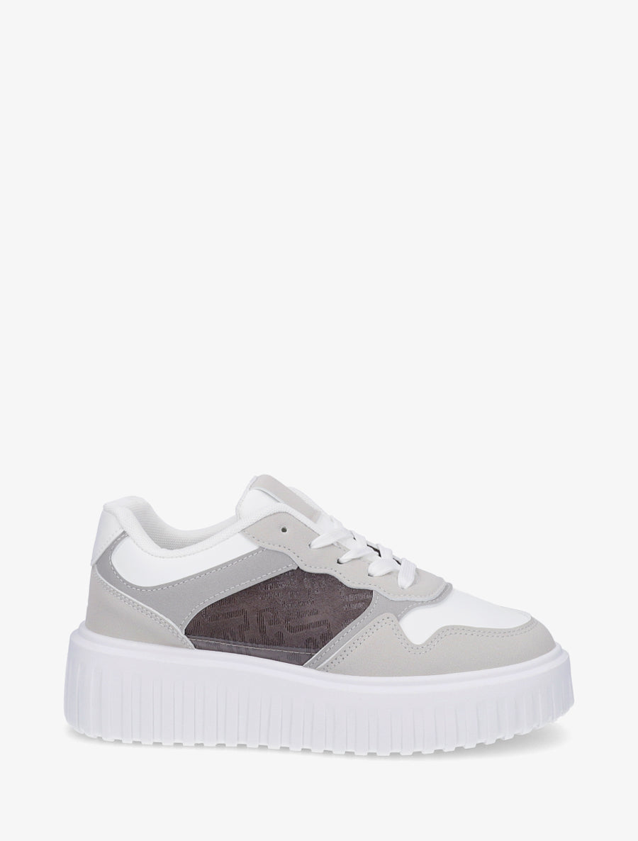 Ces baskets blanches en simili cuir et suédine apportent une touche moderne à votre garde-robe grâce à leur empiècement graphique distinctif. La semelle plateforme de 5 cm assure confort et style tout en offrant une hauteur supplémentaire. Les bouts ronds et le système de laçage garantissent un ajustement optimal. Parfaites pour vos sorties décontractées ou vos journées actives, ces baskets combinent élégance urbaine et praticité. Le mélange de matières et l'imprimé graphique en font un modèle unique qui se porte facilement avec jeans, robes ou pantalons.