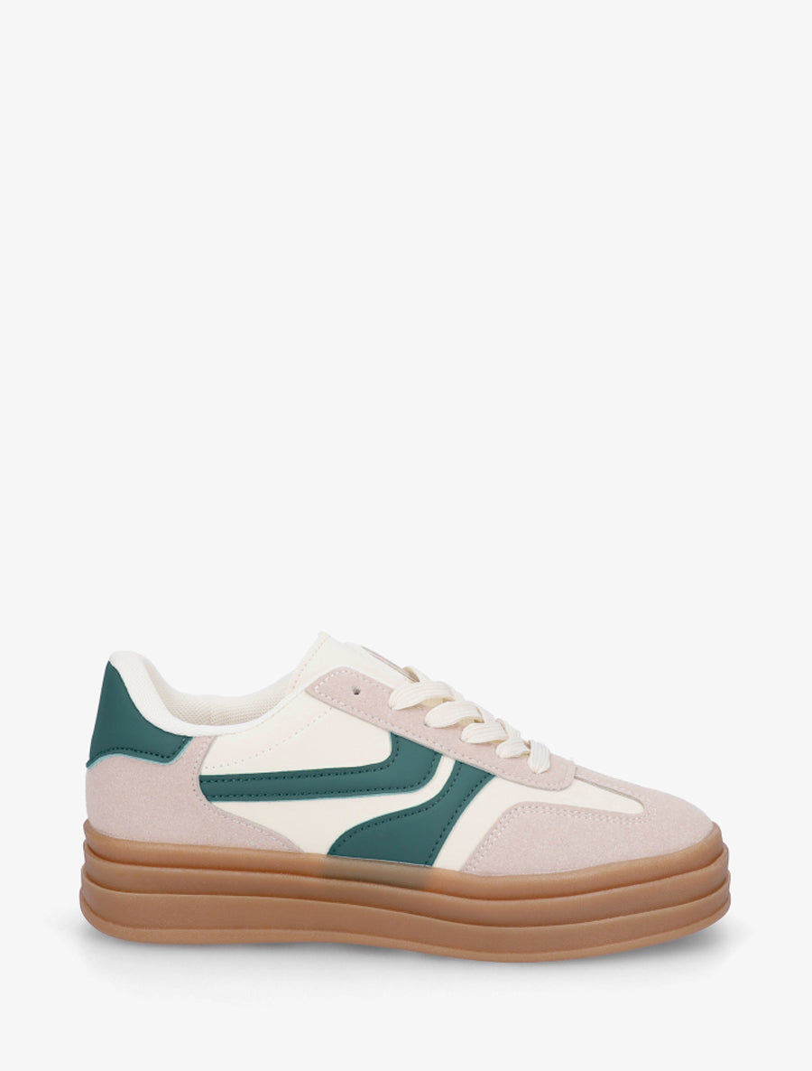 Baskets bimatière semelle plate - Vert foncé