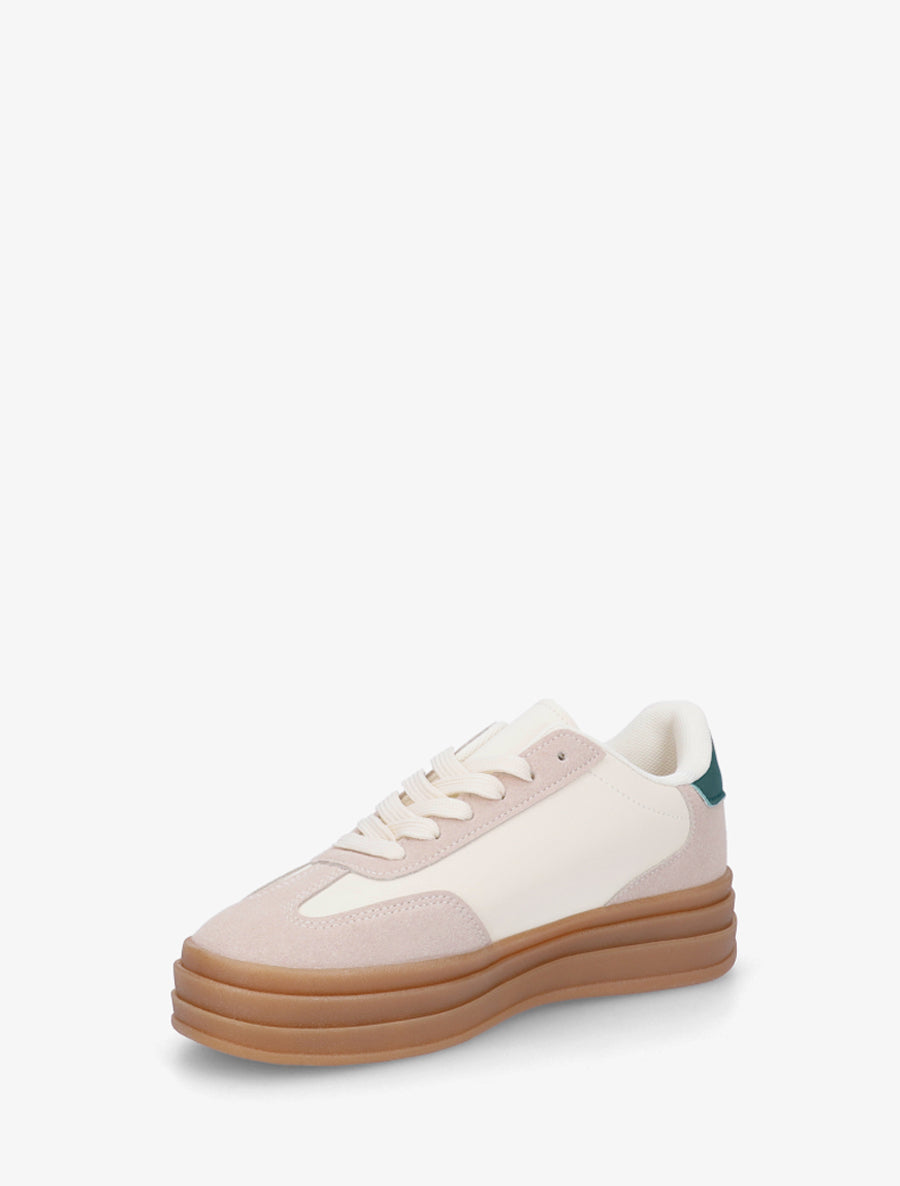 Adoptez un style urbain affirmé avec ces baskets bimatière alliant suédine et simili cuir. Leur design moderne se distingue par des empiècements contrastants et des bouts ronds pour un rendu contemporain. La semelle plate de 4 cm assure confort et stabilité au quotidien. Le système de laçage garantit un ajustement parfait à votre pied. Ces sneakers polyvalentes s'associent aussi bien à un jean qu'à un pantalon chino pour vos sorties décontractées. Un modèle incontournable pour compléter votre garde-robe casual avec caractère.
