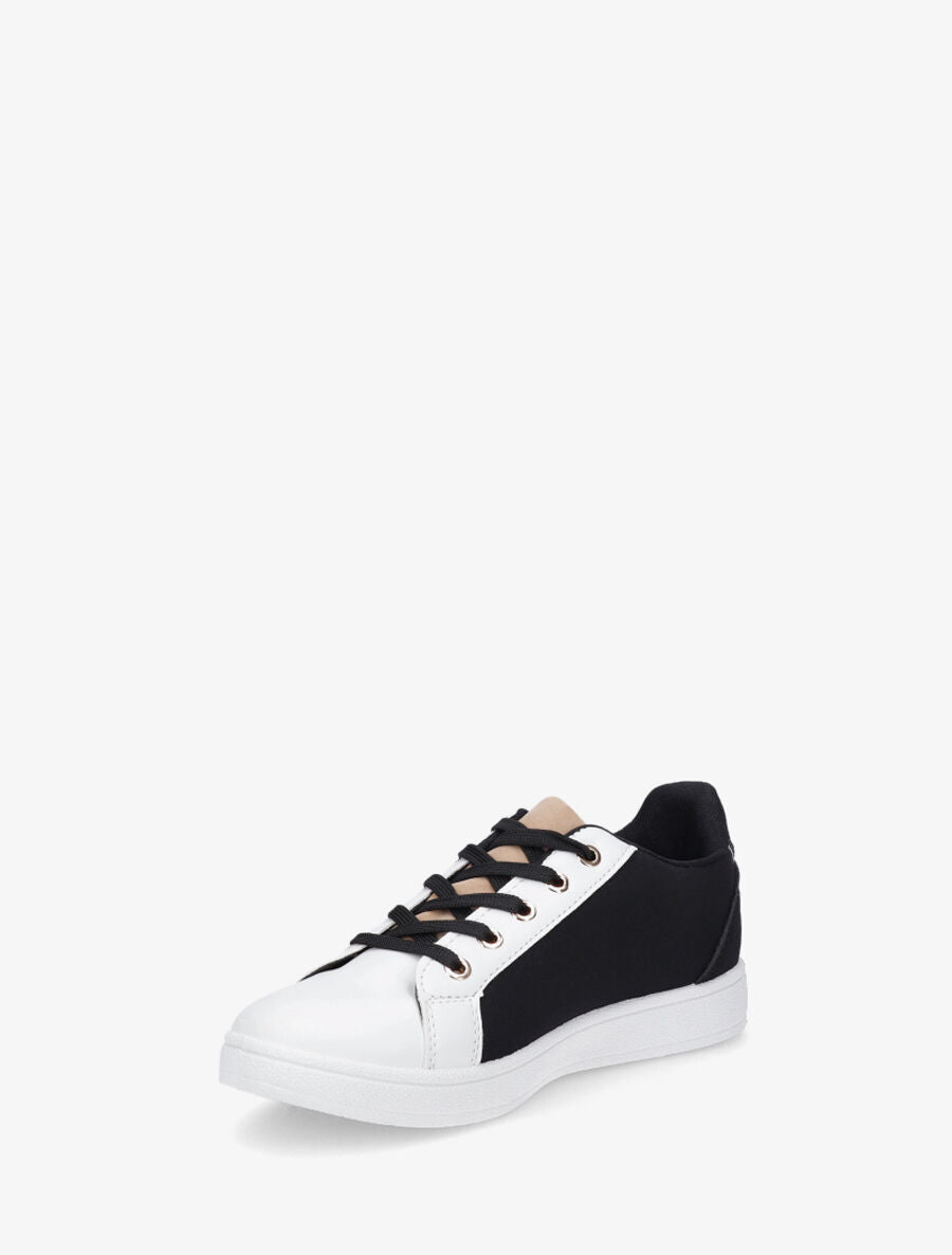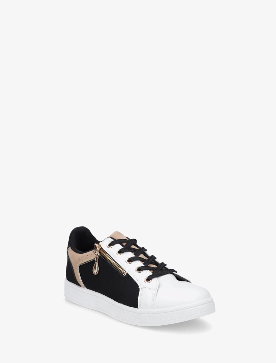 Ces baskets noires en simili cuir allient confort et praticité grâce à leur double système de fermeture. Le zip décoratif apporte une touche moderne tandis que les lacets traditionnels assurent un ajustement parfait. Dotées d'une semelle plate de 2,5 cm de hauteur et de bouts ronds, elles garantissent un maintien optimal tout au long de la journée. Leur design polyvalent s'adapte aussi bien à vos tenues décontractées qu'à vos looks urbains. Le cuir synthétique offre une alternative pratique et facile d'entretien pour un usage quotidien.