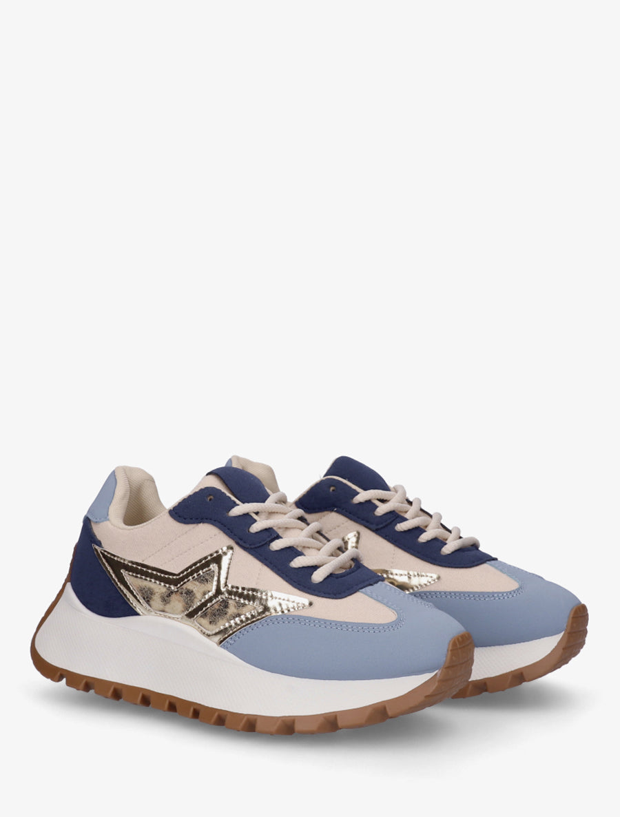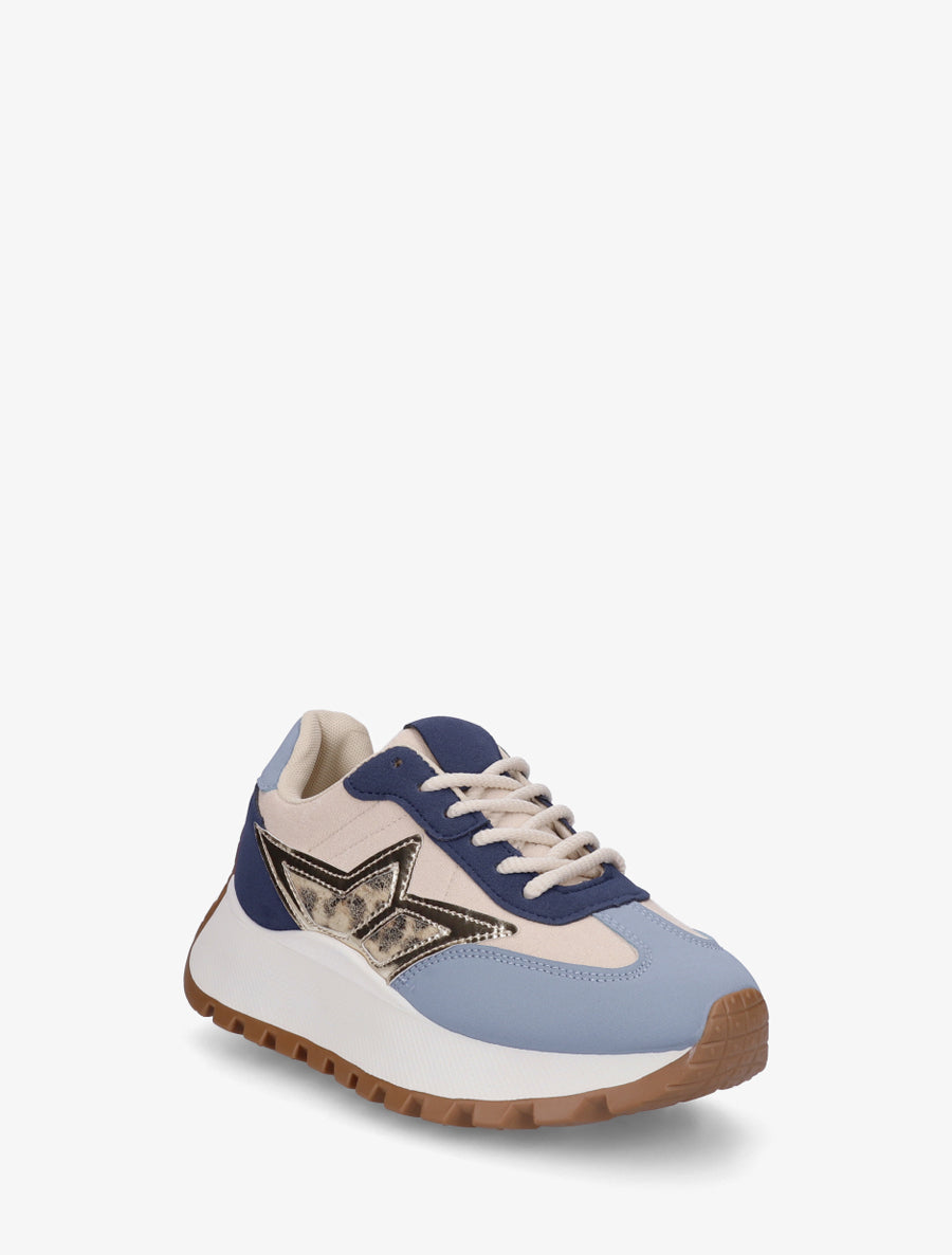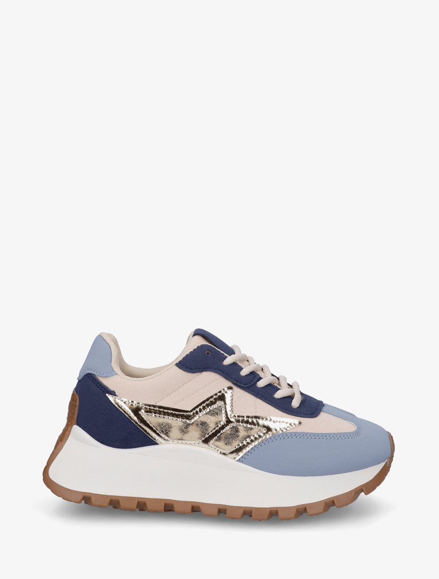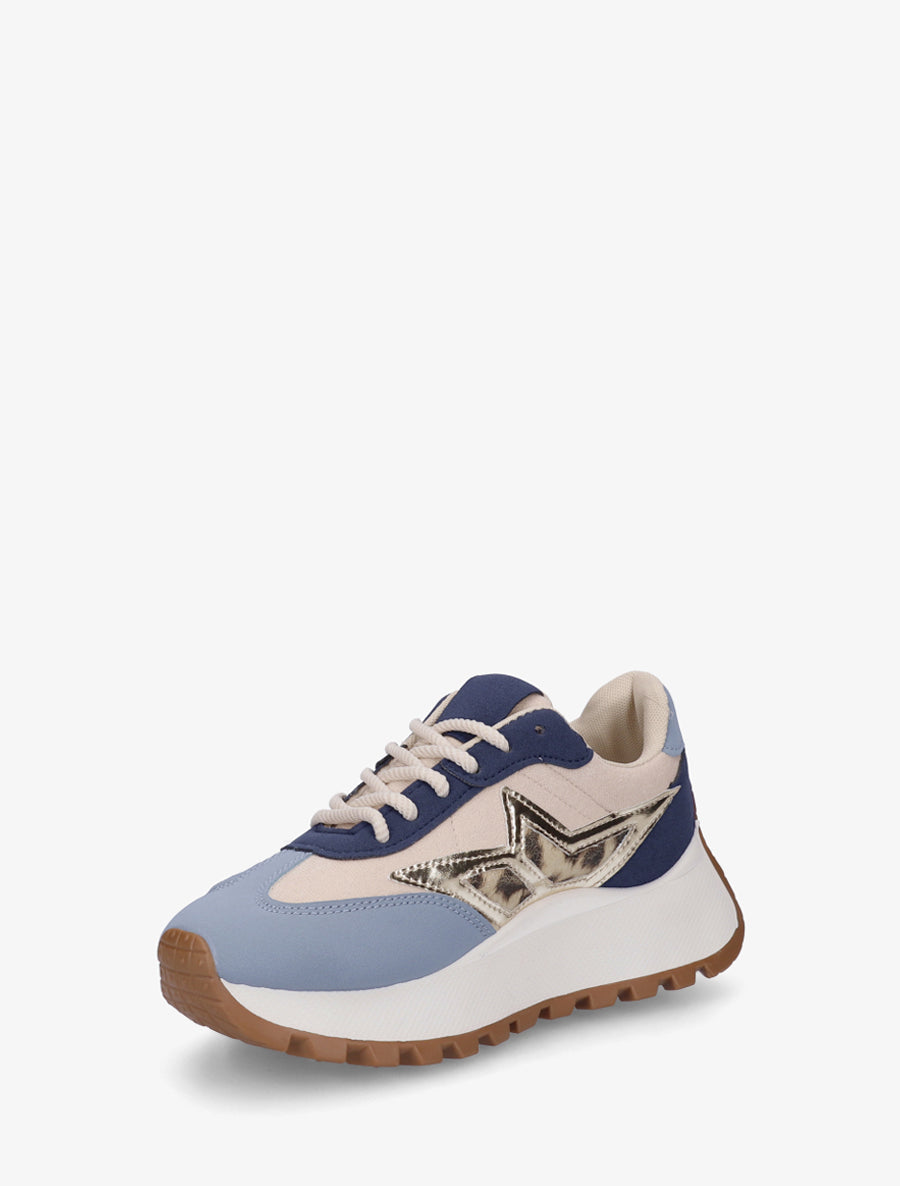 Baskets bi-matière à semelle épaisse - Bleu - 4