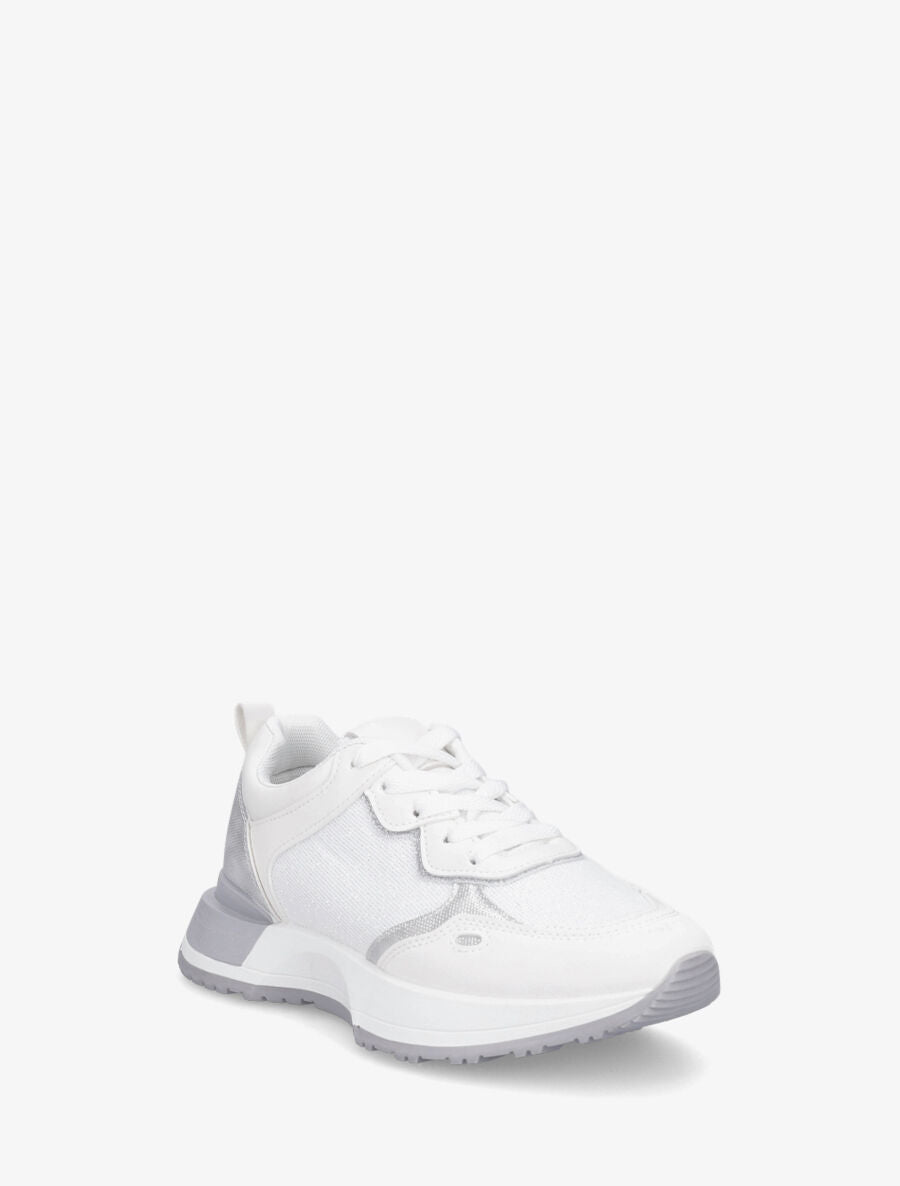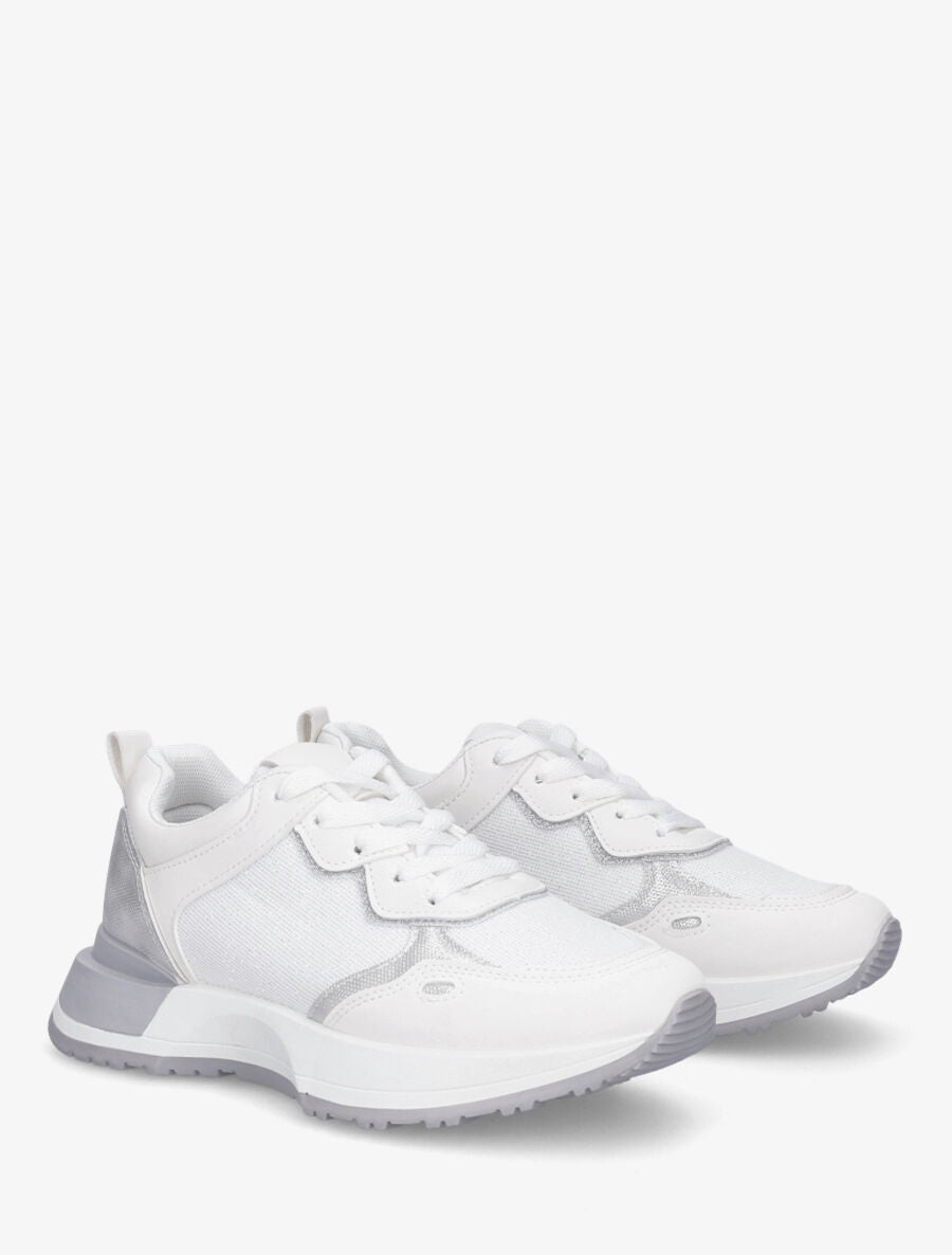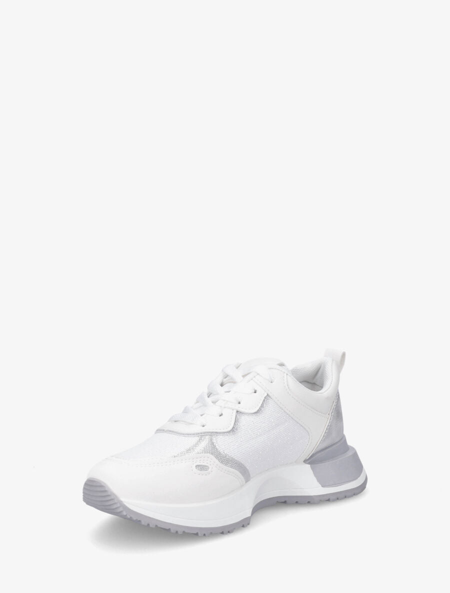 Adoptez un style résolument moderne avec ces baskets en tissu irisé associé à du simili cuir. Leur finition brillante apporte une touche contemporaine à votre garde-robe. La semelle plate de 3,5 cm assure un confort optimal tout au long de la journée. Les bouts ronds et le système de laçage garantissent un maintien parfait. Parfaites pour vos looks décontractés du quotidien comme pour dynamiser une tenue casual-chic, ces baskets bimatière s'imposent comme l'allié mode incontournable de la saison.