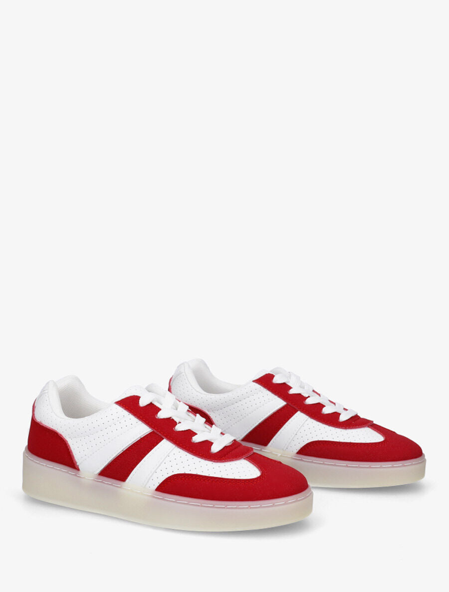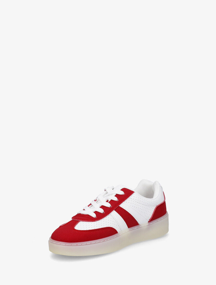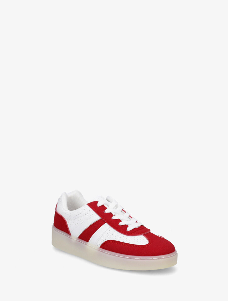 Adoptez un style sportif et tendance avec ces baskets bimatière qui allient suédine douce et simili cuir résistant. Leur quartier perforé assure une ventilation optimale tandis que les empiècements contrastants apportent une touche moderne et dynamique. La semelle plate de 3,5 cm garantit un confort absolu pour vos journées actives. Leur bout rond et leur système de laçage classique s'adaptent parfaitement à toutes vos tenues décontractées. Un modèle polyvalent qui accompagne vos déplacements urbains avec style et praticité au quotidien.