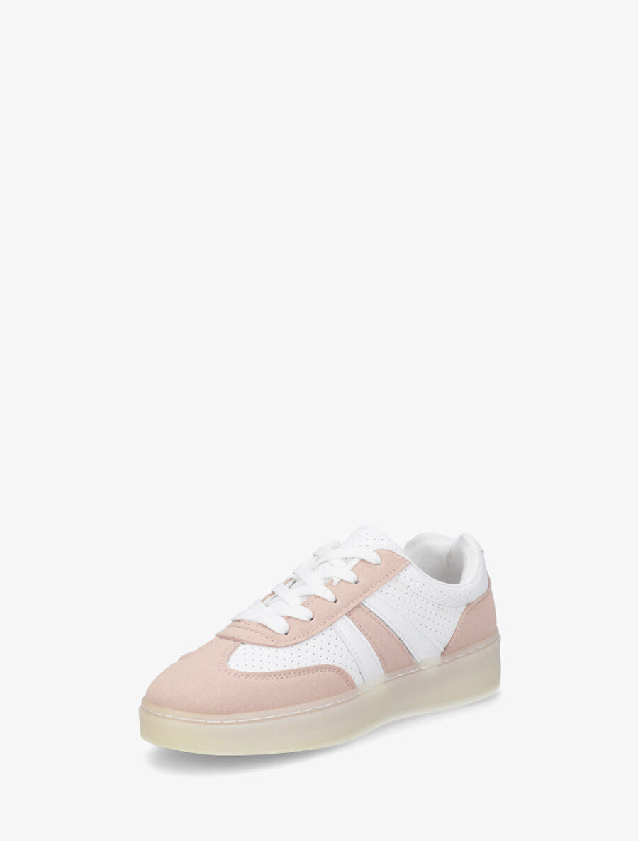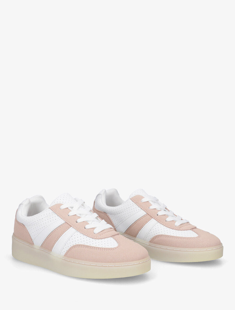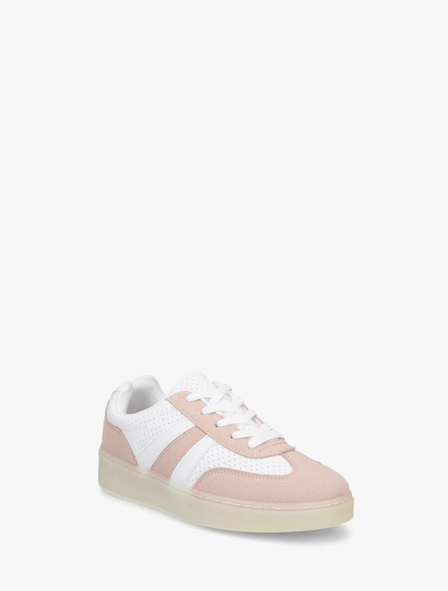 Adoptez un style sportif et raffiné avec ces baskets bimatière qui allient suédine douce et simili cuir résistant. Leur quartier perforé apporte une touche de légèreté et de modernité, tandis que les empiècements contrastants créent un effet visuel dynamique. Les bouts ronds garantissent un confort optimal au quotidien. Dotées d'une semelle plate de 3,5 cm de hauteur, elles se lacent facilement pour un ajustement personnalisé. Parfaites pour vos journées actives ou vos sorties décontractées, ces baskets roses s'accordent avec toutes vos tenues casual. Un indispensable pour allier praticité et tendance.