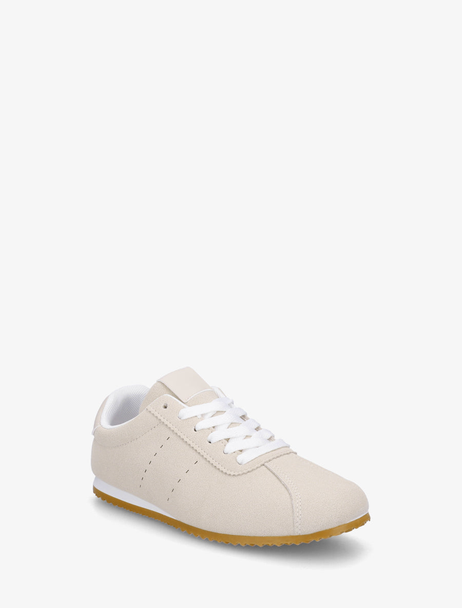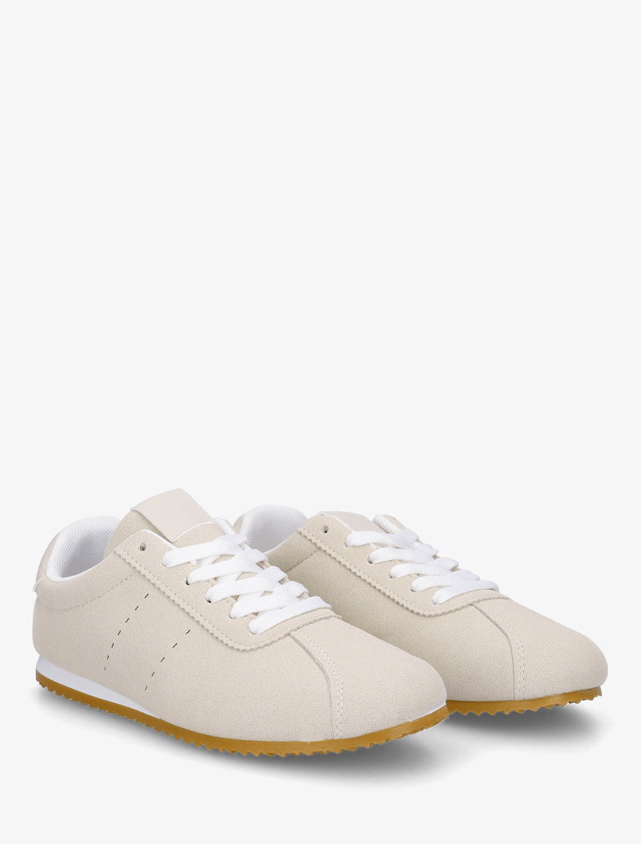 Adoptez le style décontracté avec ces baskets en suédine beige au charme intemporel. Leur design à bout rond et leurs perforations décoratives apportent une touche moderne et respirante. Les coutures contrastantes soulignent la finition soignée, tandis que la semelle plate de 1,5 cm assure un confort optimal au quotidien. Le système de laçage garantit un maintien ajusté et personnalisable. Parfaites pour vos sorties urbaines ou vos week-ends détente, ces baskets s'accordent facilement avec un jean ou un pantalon chino pour un look casual réussi.