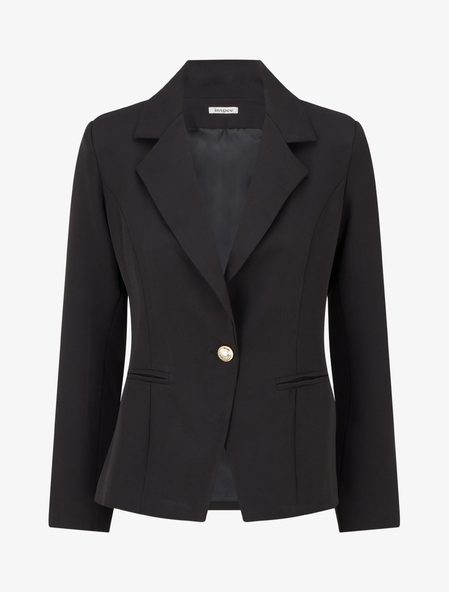 Ce blazer noir à coupe droite incarne l'élégance intemporelle. Doté d'un col cranté structuré et d'épaulettes marquées, il sublime la silhouette avec sophistication. Ses manches longues et sa fermeture boutonnée apportent une touche classique, tandis que les deux poches décoratives ajoutent une note fonctionnelle. Entièrement doublé pour un confort optimal, ce blazer de 60 cm se porte aussi bien au bureau qu'en soirée. Sa composition en polyester avec une touche d'élasthanne garantit un maintien impeccable tout au long de la journée.
