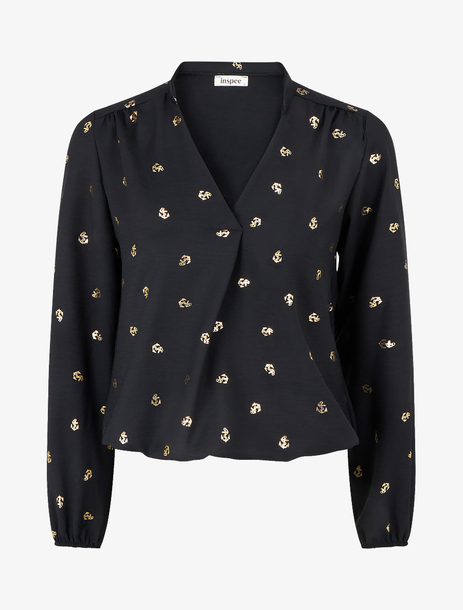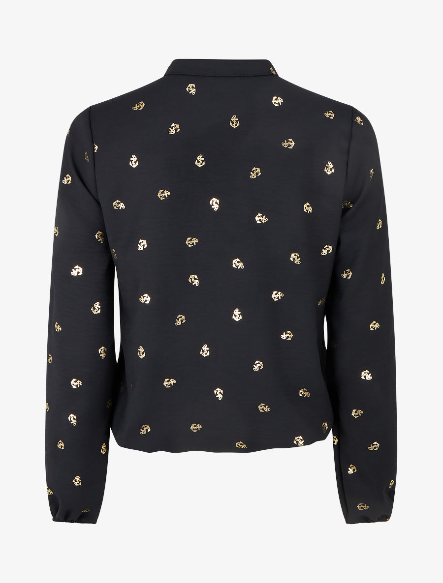 Blouse à manches longues motif ancres irisées - Noir - 2