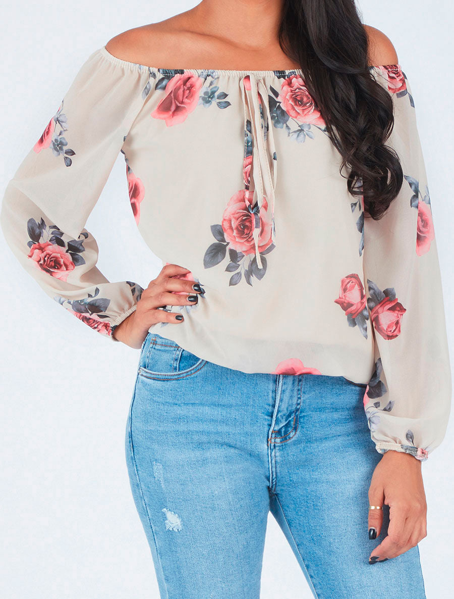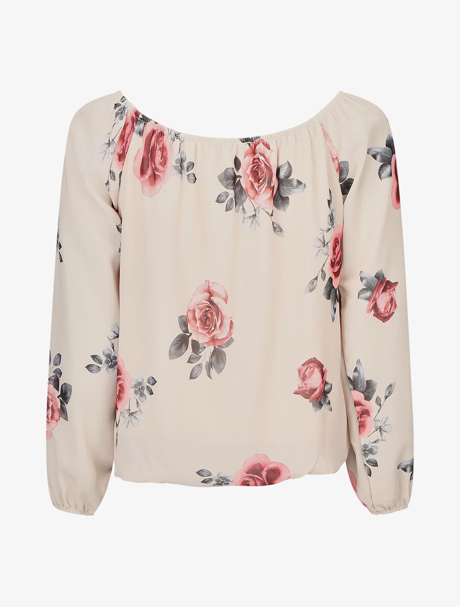 Blouse imprimé grandes fleurs à manches transparentes - Beige - 1