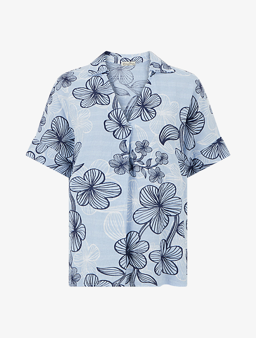 Blouse imprimé hawaïen effet lin - Bleu ciel - 1