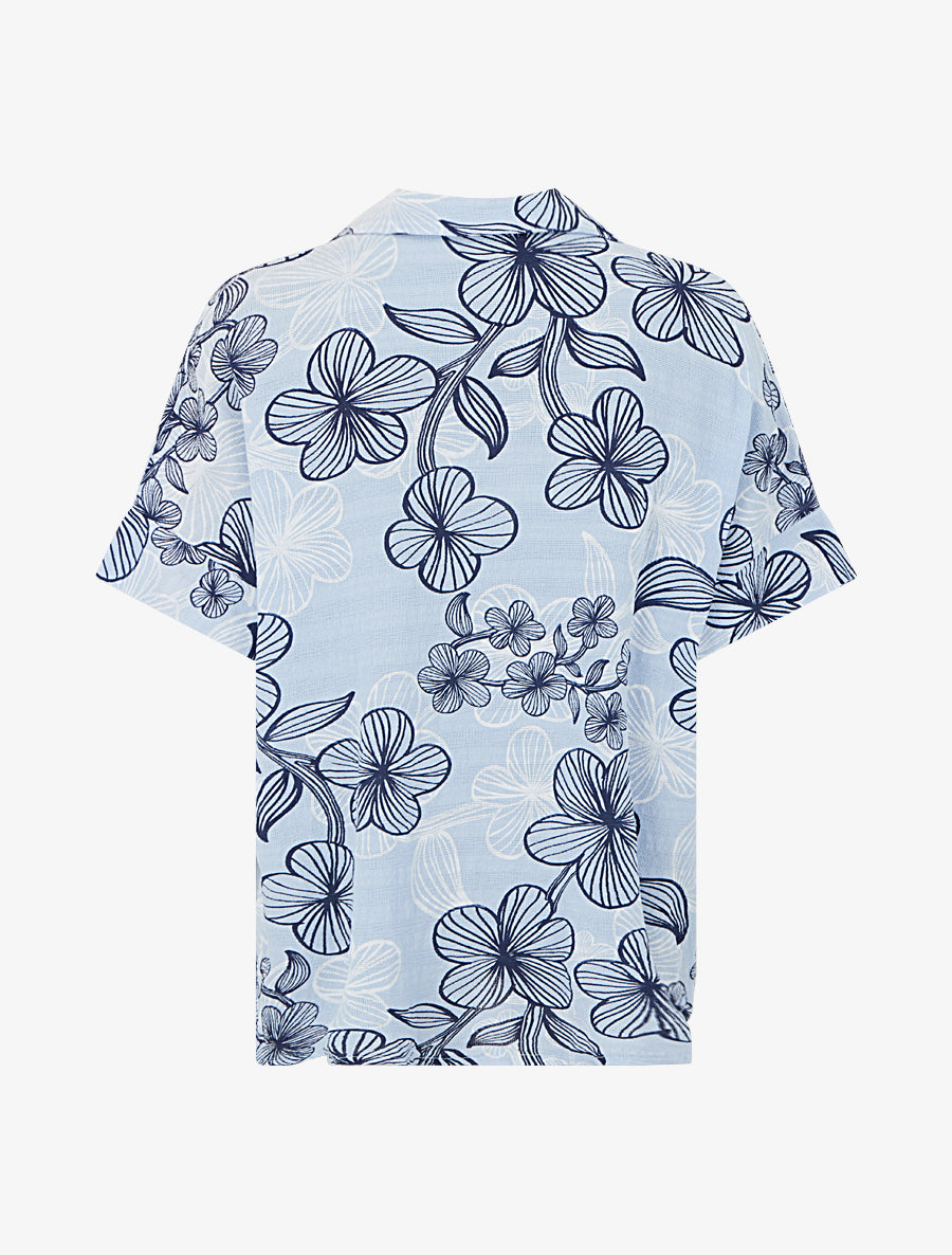 Blouse imprimé hawaïen effet lin - Bleu ciel - 3