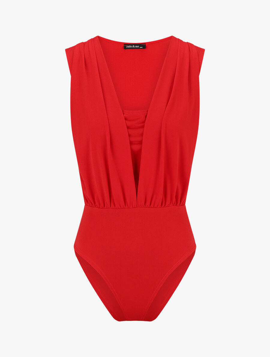 Body stretch col V plongeant - Rouge