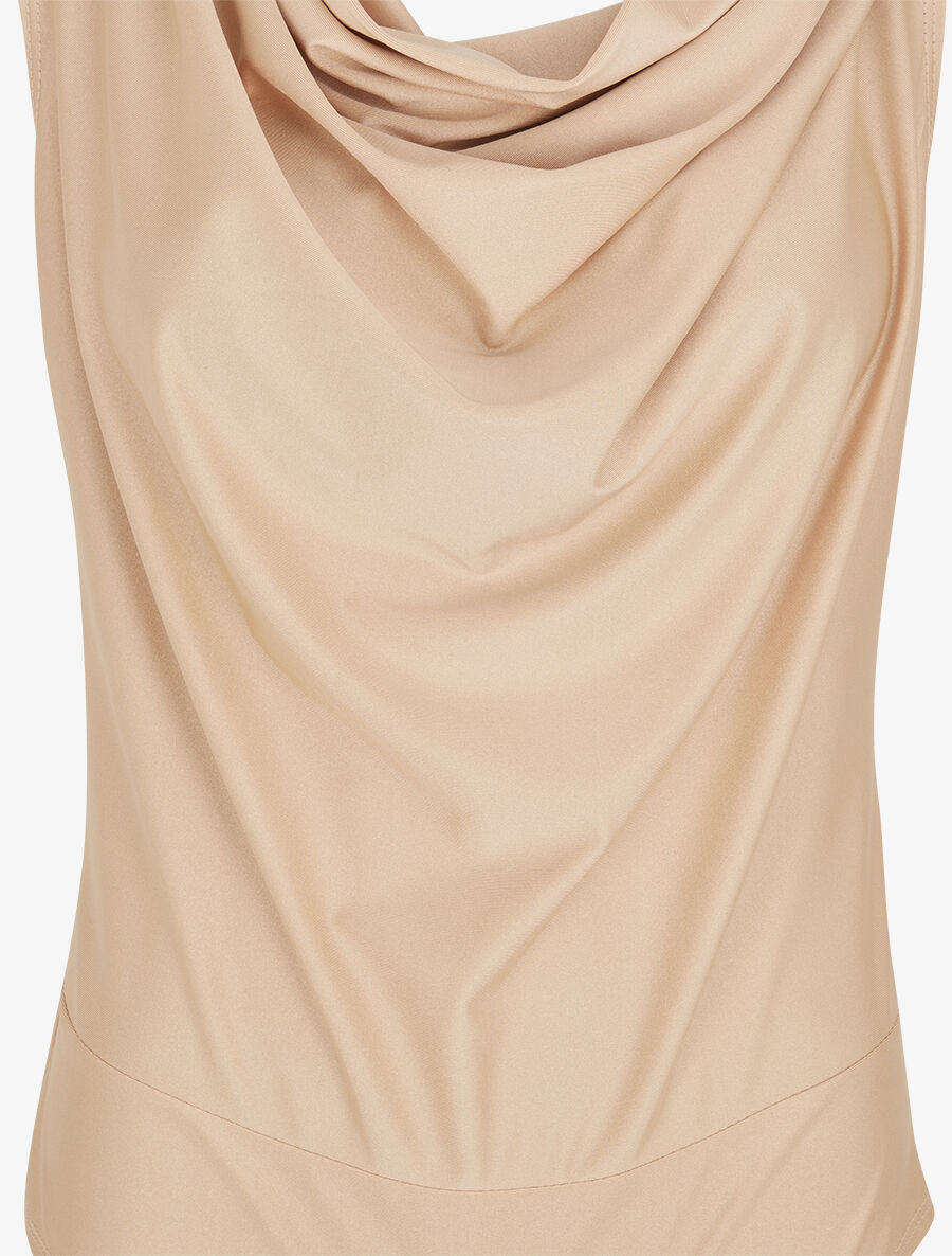 Ce body beige allie raffinement et confort grâce à sa matière satinée stretch qui épouse délicatement la silhouette. Son col bénitier élégant et sa coupe ajustée sans manches créent une base parfaite pour toutes vos tenues. Fabriqué en Italie avec un savoir-faire exceptionnel, il se ferme discrètement par agrafes pour un maintien optimal. Idéal sous un pantalon tailleur ou une jupe crayon, ce body devient l'allié indispensable de votre garde-robe professionnelle comme décontractée. Sa longueur étudiée de 76 cm garantit un tombé impeccable sans remonter.
