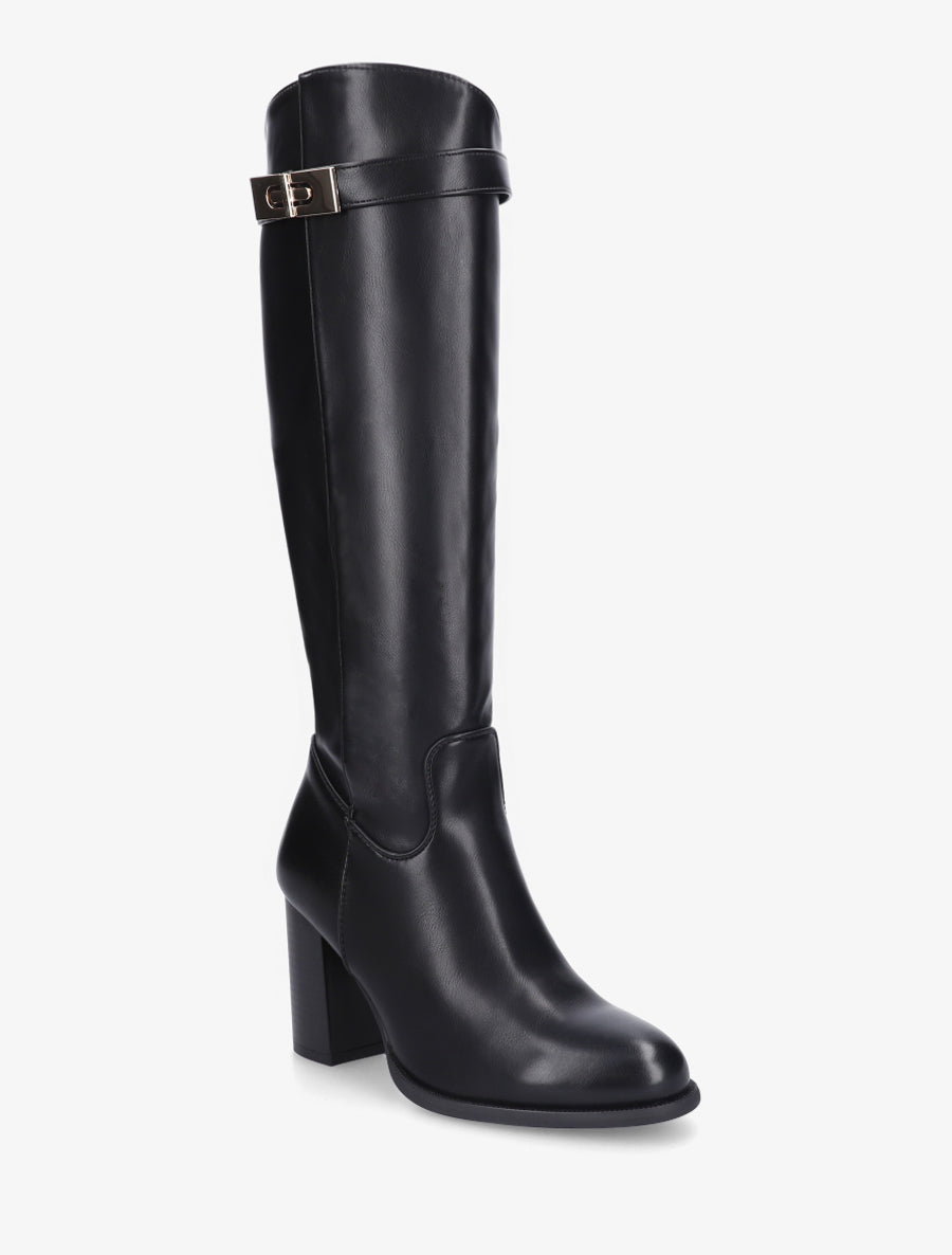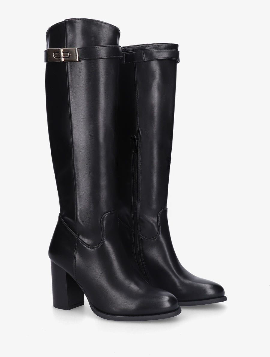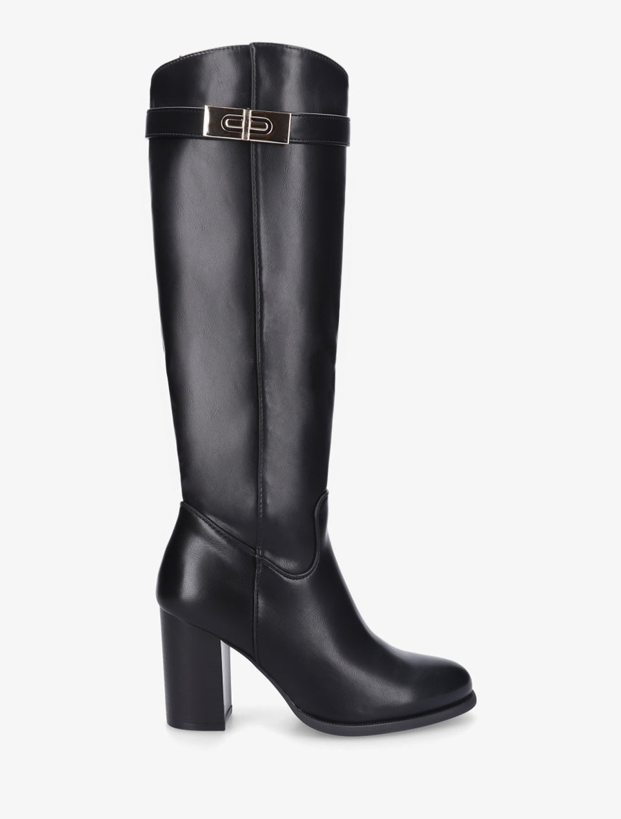 Bottes talon bottier boucle métallique - Noir