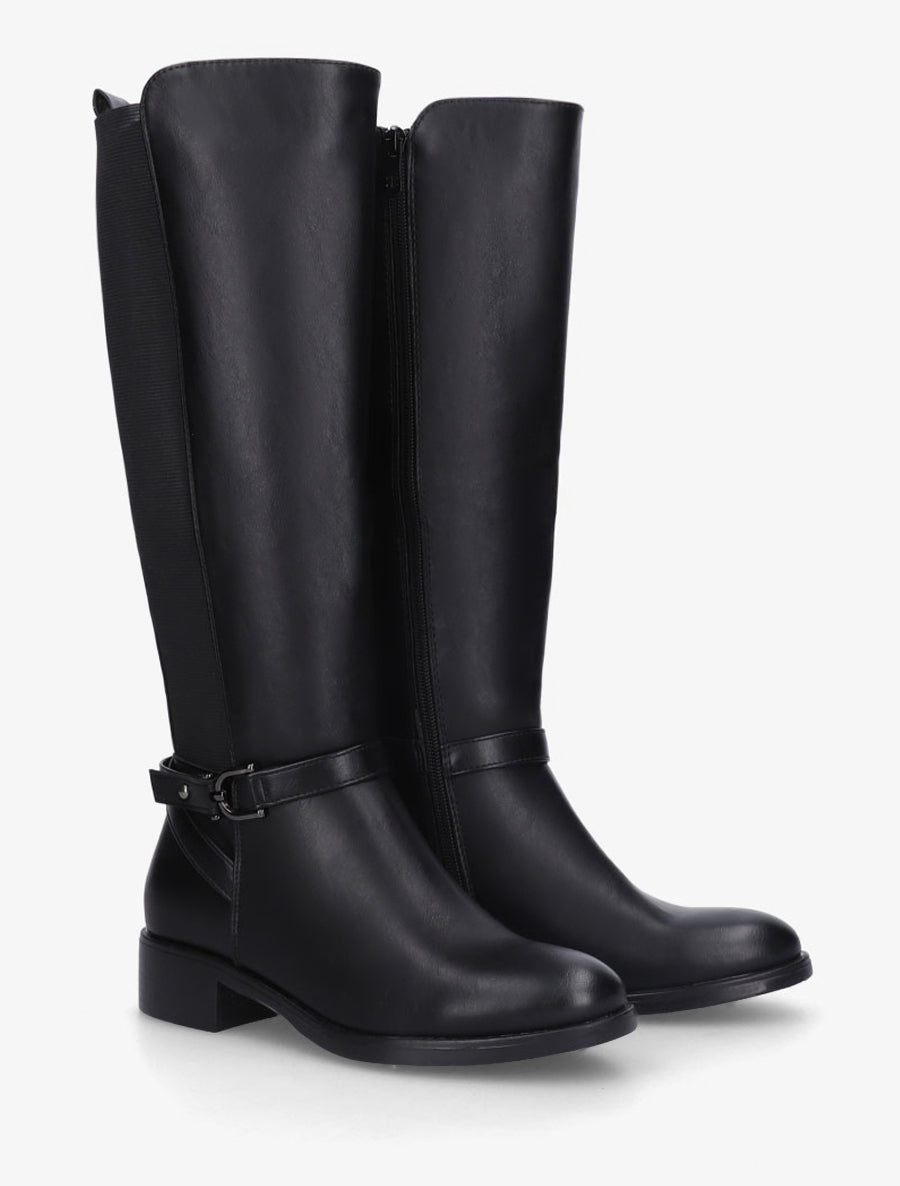 Ces bottes noires en simili cuir allient confort et praticité au quotidien. Leur tige de 37 cm et leur tour de mollet élastiqué de 34 cm assurent un ajustement optimal. Le talon bloc de 3,5 cm garantit une stabilité parfaite pour vos journées actives. Le ceinturon décoratif apporte une touche d'originalité, tandis que la fermeture zippée intérieure facilite l'enfilage. Les bouts ronds et la silhouette épurée s'accordent avec tous vos looks casual, du jean au pantalon habillé. Un modèle polyvalent qui vous accompagne du bureau aux sorties en ville avec style et aisance.