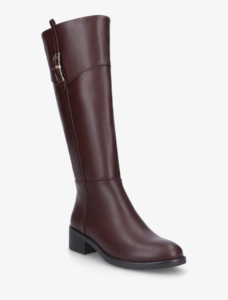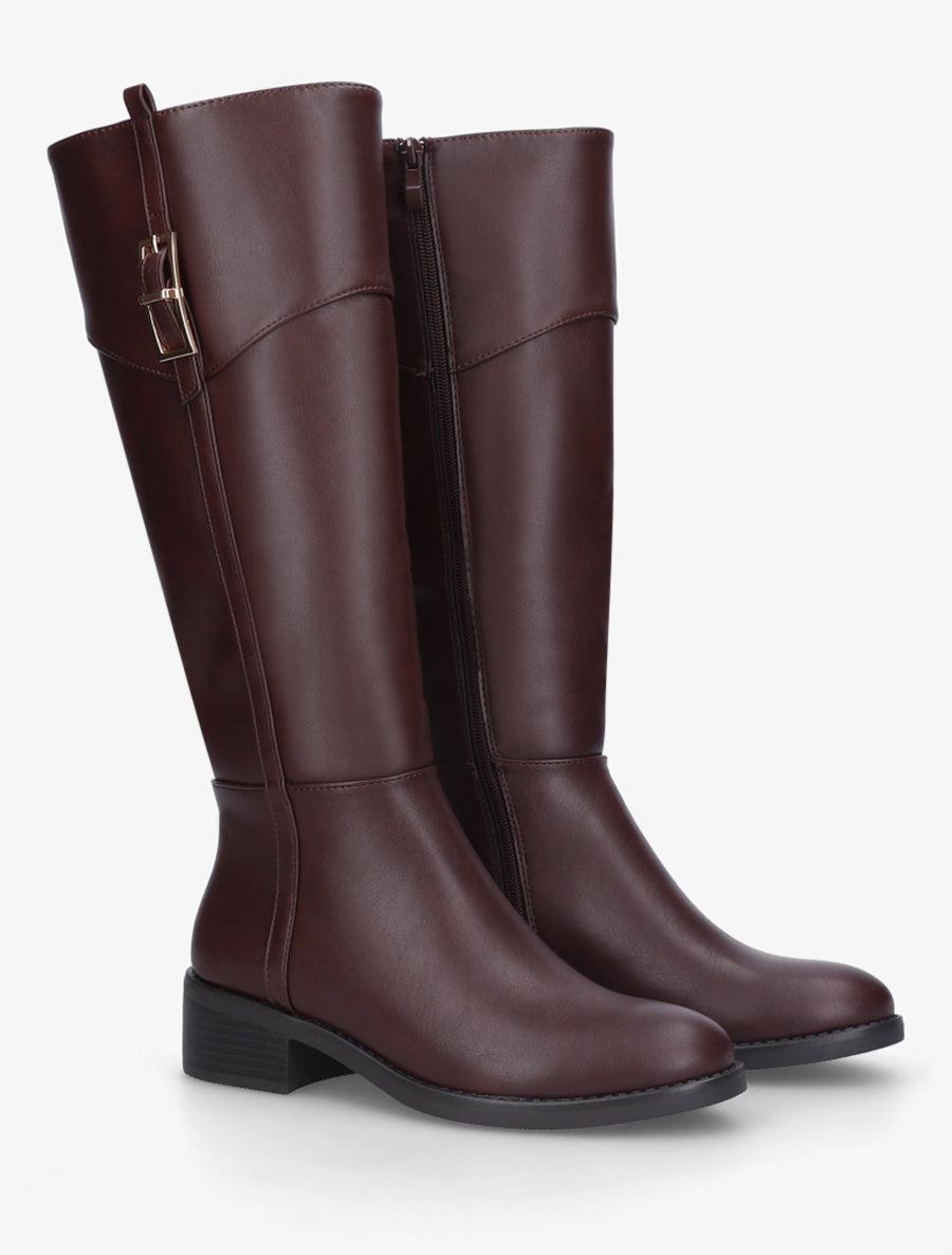 Adoptez ces bottes hautes en simili cuir qui allient élégance intemporelle et confort optimal. Avec leur tige de 36 cm et leur talon carré de 4,5 cm, elles offrent une silhouette harmonieuse et une stabilité parfaite. La boucle décorative au niveau du mollet apporte une touche raffinée, tandis que la fermeture zippée intérieure garantit un enfilage facile. Leurs bouts ronds et leur tour de mollet de 34 cm assurent un ajustement confortable. Parfaites pour vos journées en ville ou vos sorties automnales, ces bottes deviennent rapidement un indispensable de votre garde-robe.