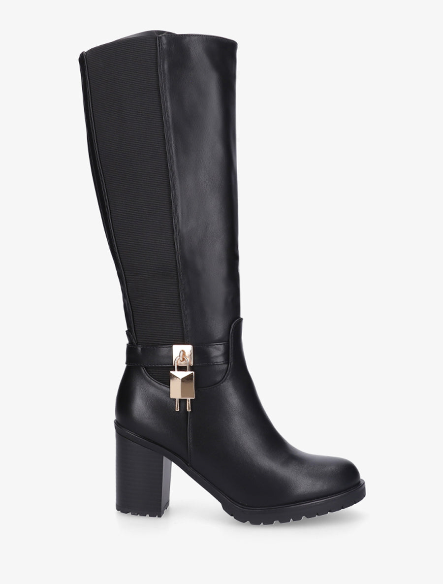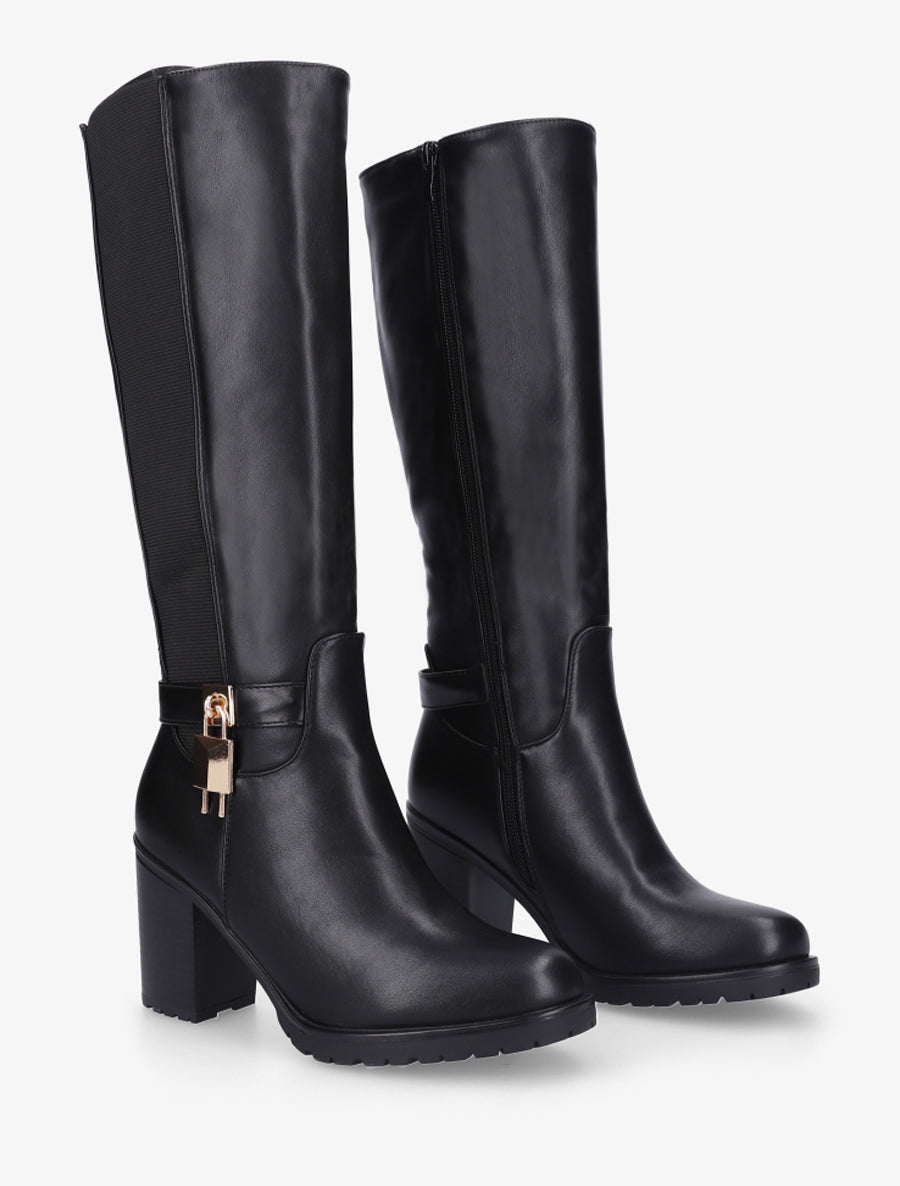 Bottes talon bloc cadenas métallique - Noir