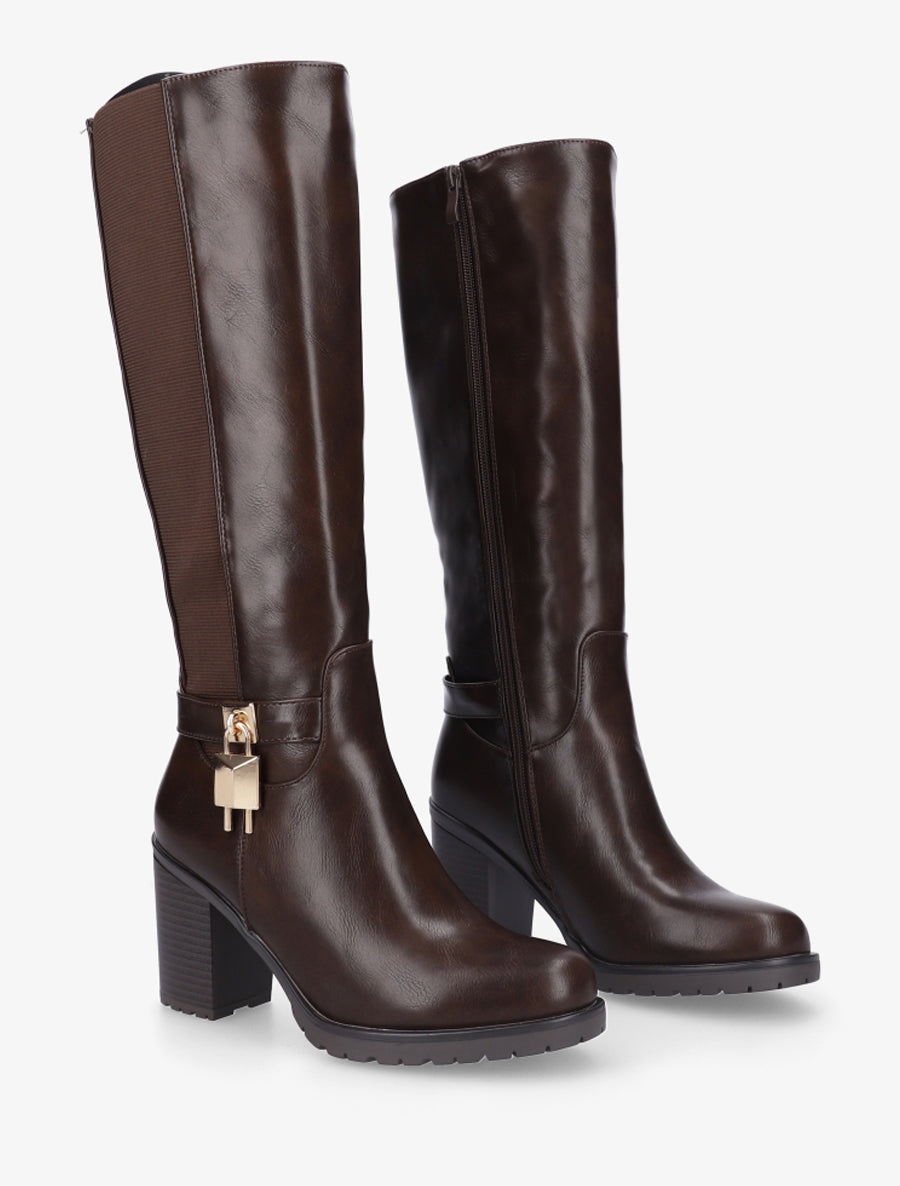 Bottes élastiquées à cadenas décoratif - Marron - 1