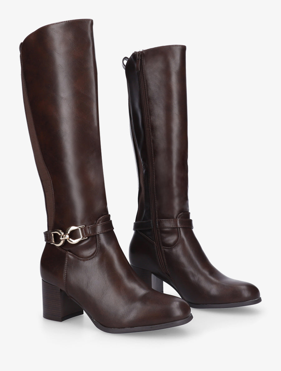 Découvrez ces bottes en simili cuir marron qui allient style et praticité. Avec leur tige de 34 cm et leur tour de mollet élastiqué, elles garantissent un ajustement confortable. Le talon bloc de 5,5 cm offre une stabilité optimale tout au long de la journée. La boucle décorative apporte une touche raffinée, tandis que la fermeture zip intérieur facilite l'enfilage. Leurs bouts ronds complètent un design polyvalent. Parfaites pour vos sorties quotidiennes ou occasions décontractées, ces bottes s'associent facilement à vos tenues automnales et hivernales. Un choix idéal pour un look moderne et fonctionnel.