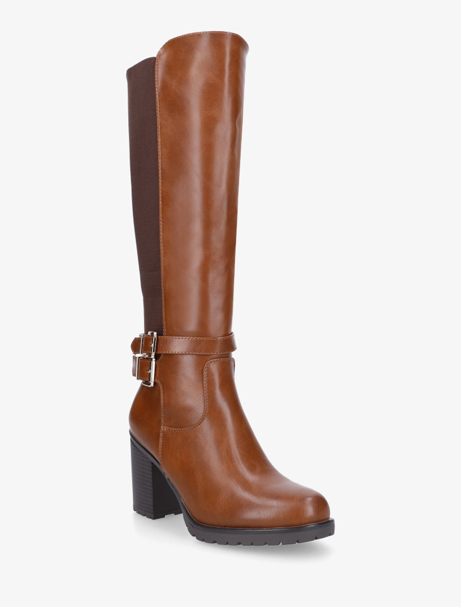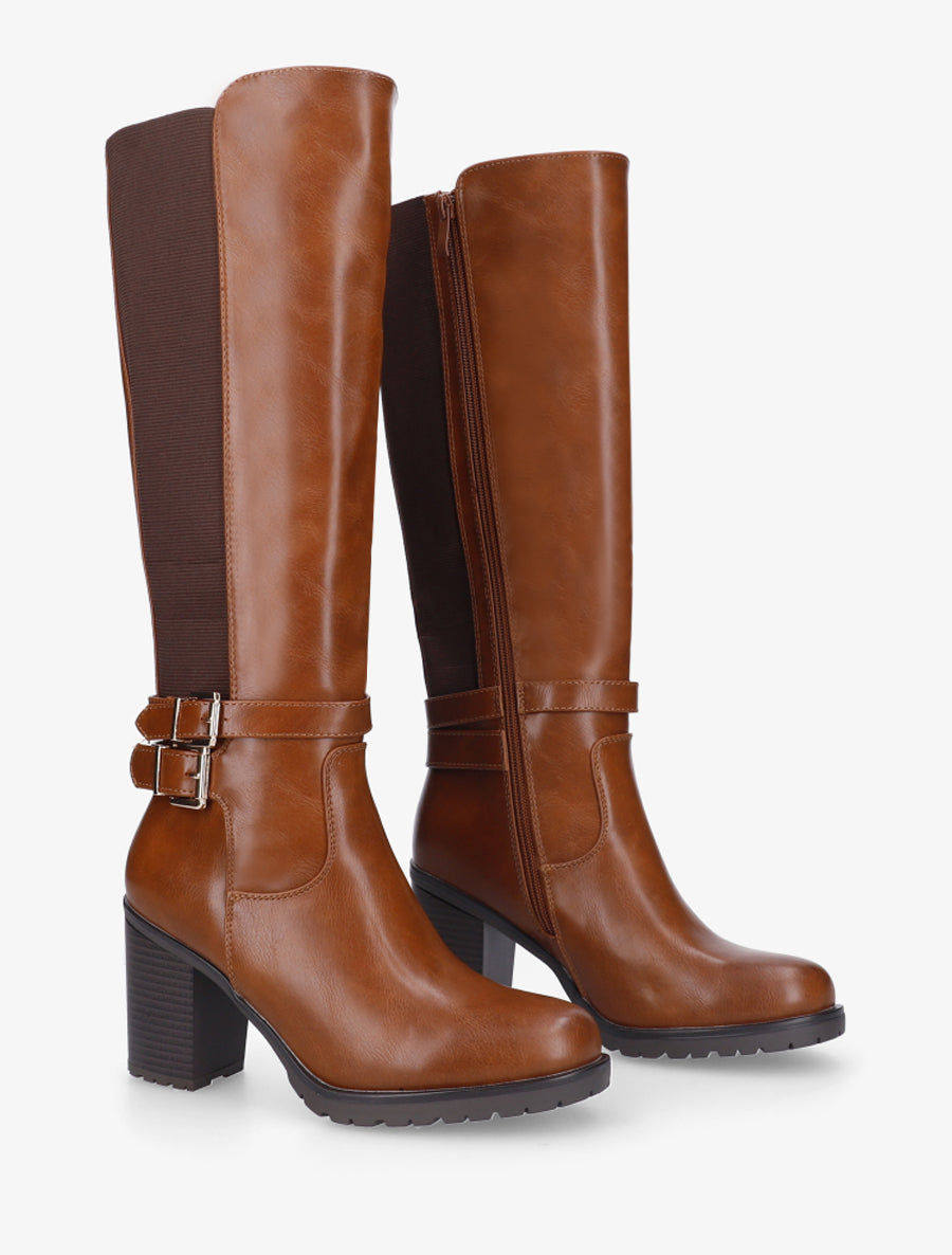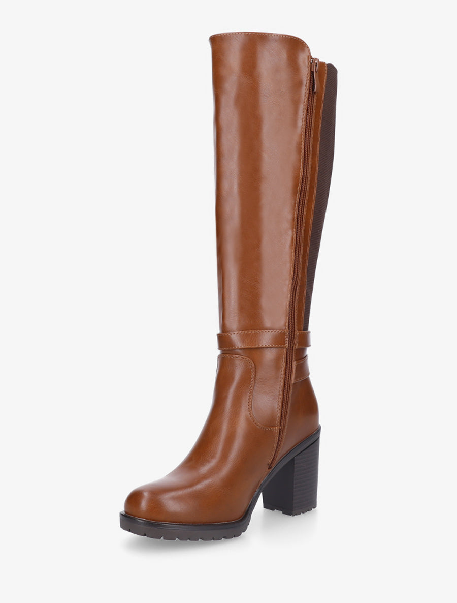 Bottes cavalières simili talon bloc - Camel