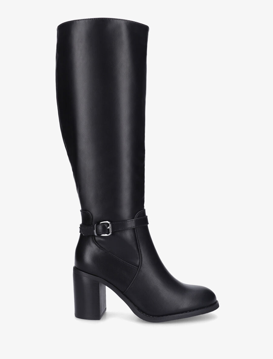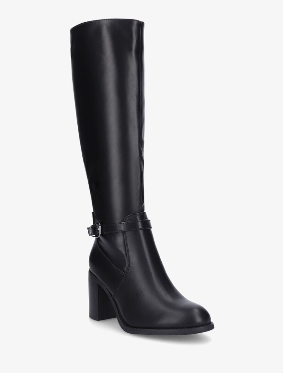 Ces bottes noires en simili cuir allient élégance et confort avec leur talon bloc de 8 cm. La tige haute de 40 cm affine la silhouette, tandis que la boucle décorative apporte une touche raffinée. Dotées d'une fermeture zippée intérieure pour un enfilage facile, elles présentent des bouts ronds et un tour de mollet de 34 cm. Parfaites pour vos journées au bureau ou vos sorties en ville, ces bottes s'associent aussi bien avec un jean qu'une robe midi. Un modèle polyvalent qui traverse les saisons avec style.