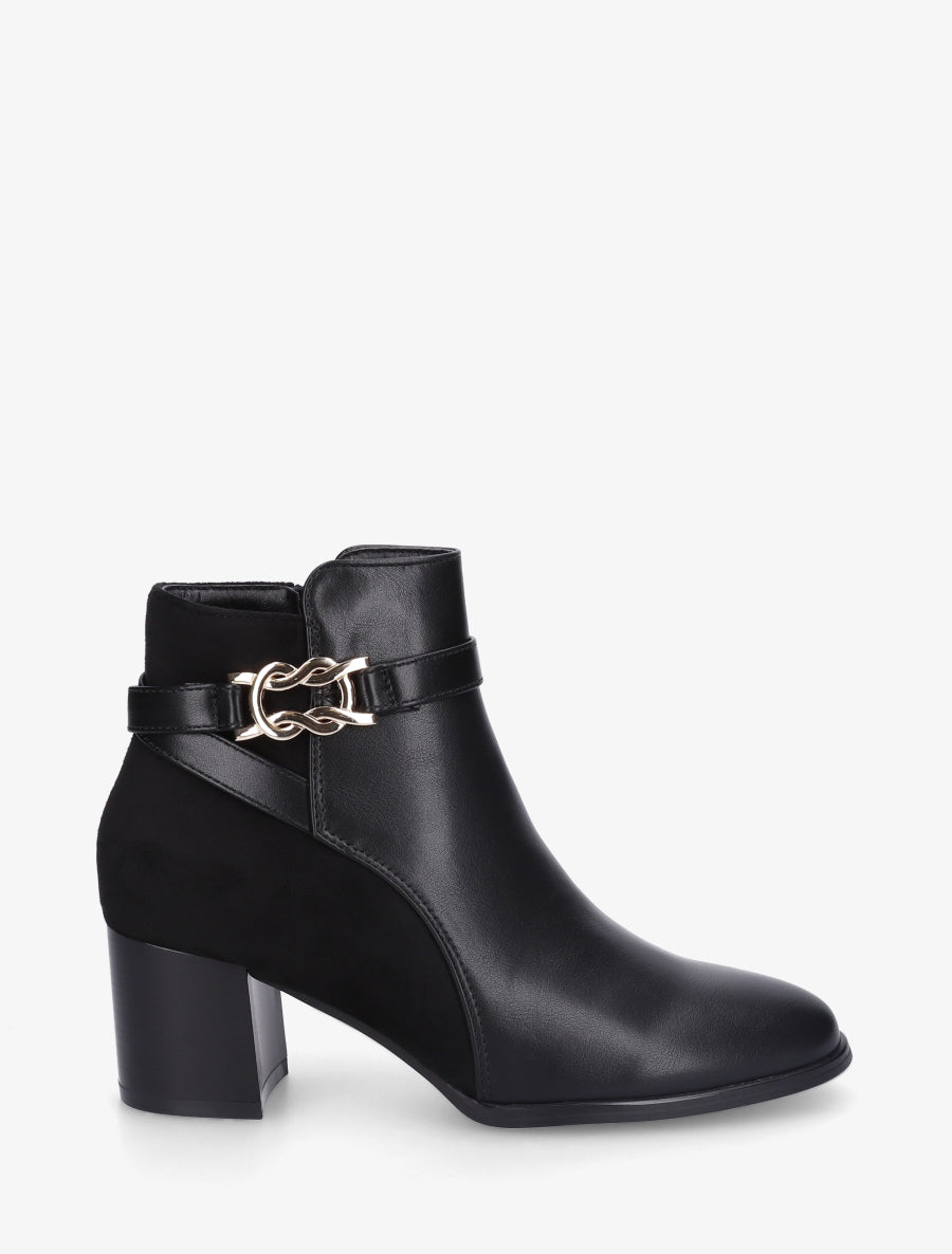 Bottines bi-matière à boucle métallique fantaisie - Noir - 1