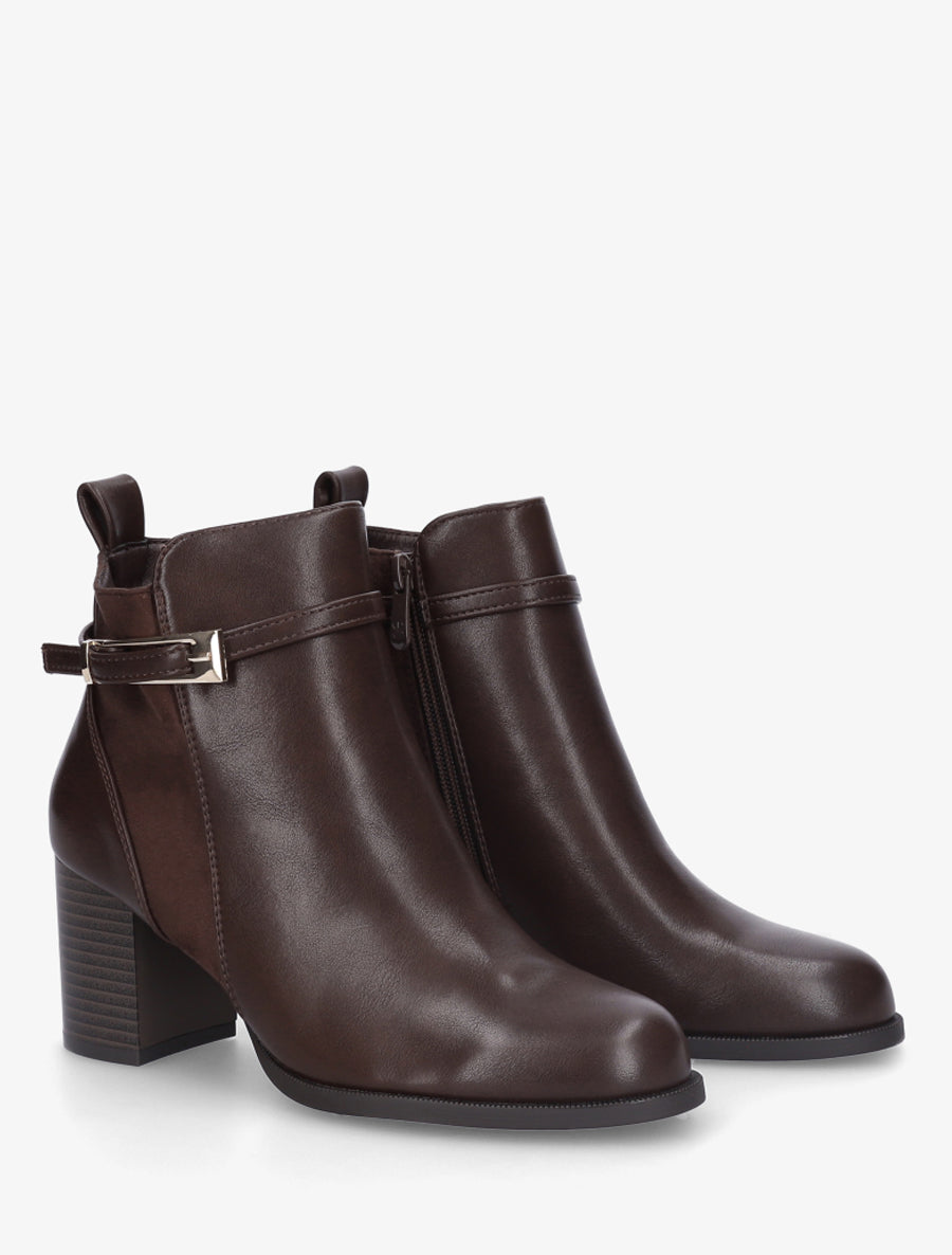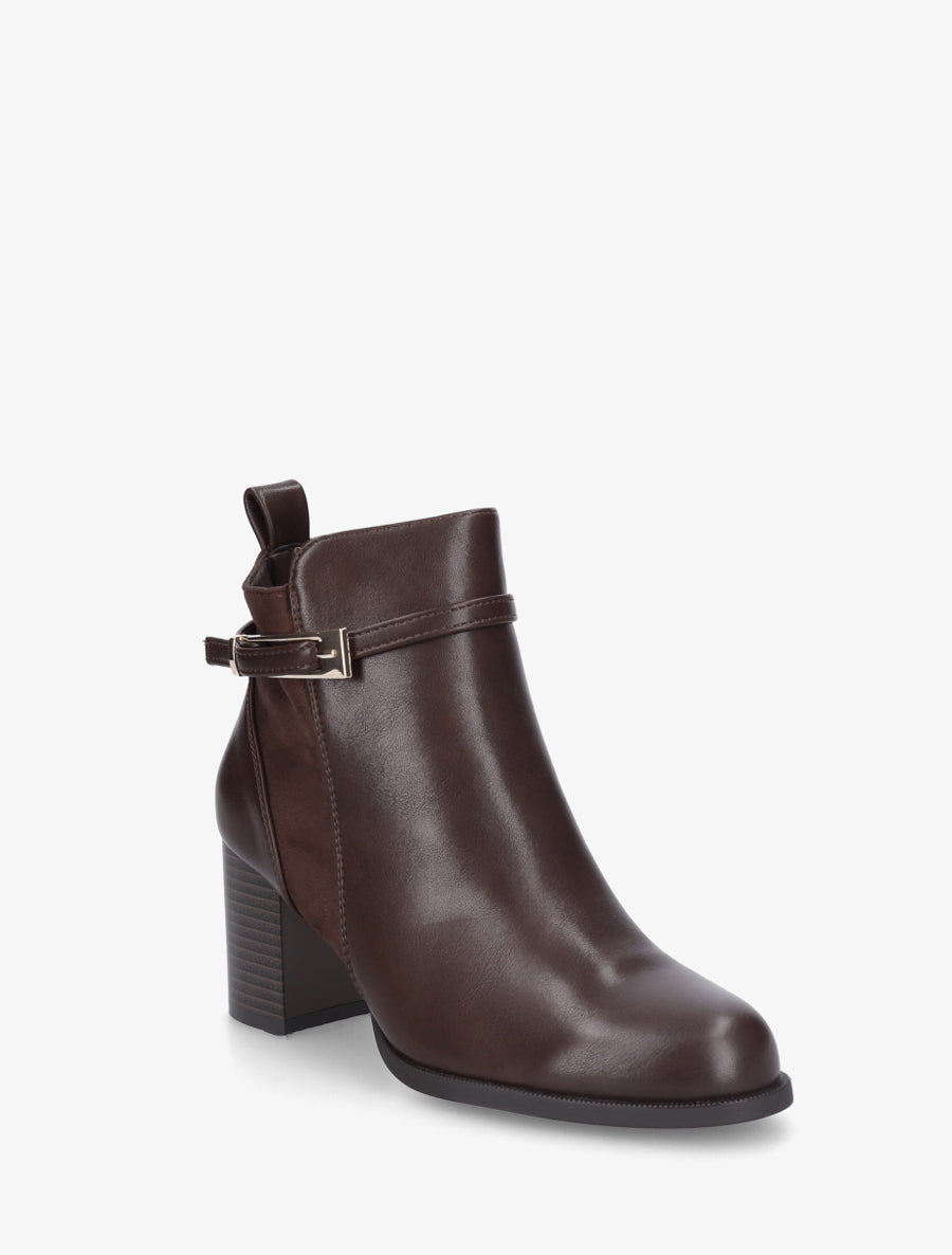 Ces bottines marron associent avec raffinement simili cuir et suédine pour un effet bi-matière moderne. Leur talon bloc de 7 cm et leur tige de 13 cm offrent une silhouette équilibrée et confortable. La fermeture zippée intérieure à la cheville facilite l'enfilage, tandis que la sangle décorative apporte une touche d'originalité. Leurs bouts ronds assurent un confort optimal tout au long de la journée. Parfaites pour vos tenues automnales et hivernales, elles s'accordent aussi bien avec un jean qu'une jupe midi. Un modèle polyvalent qui allie style et praticité au quotidien.