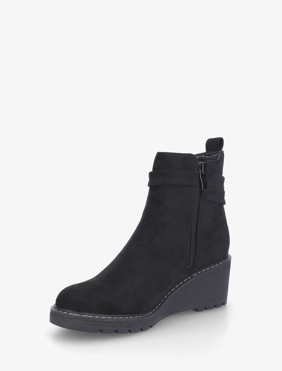 Bottines talon compensé suédine zippées - Noir