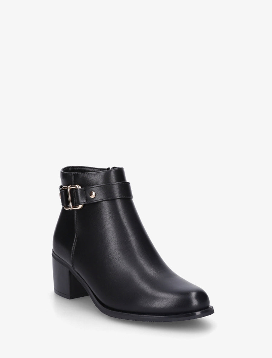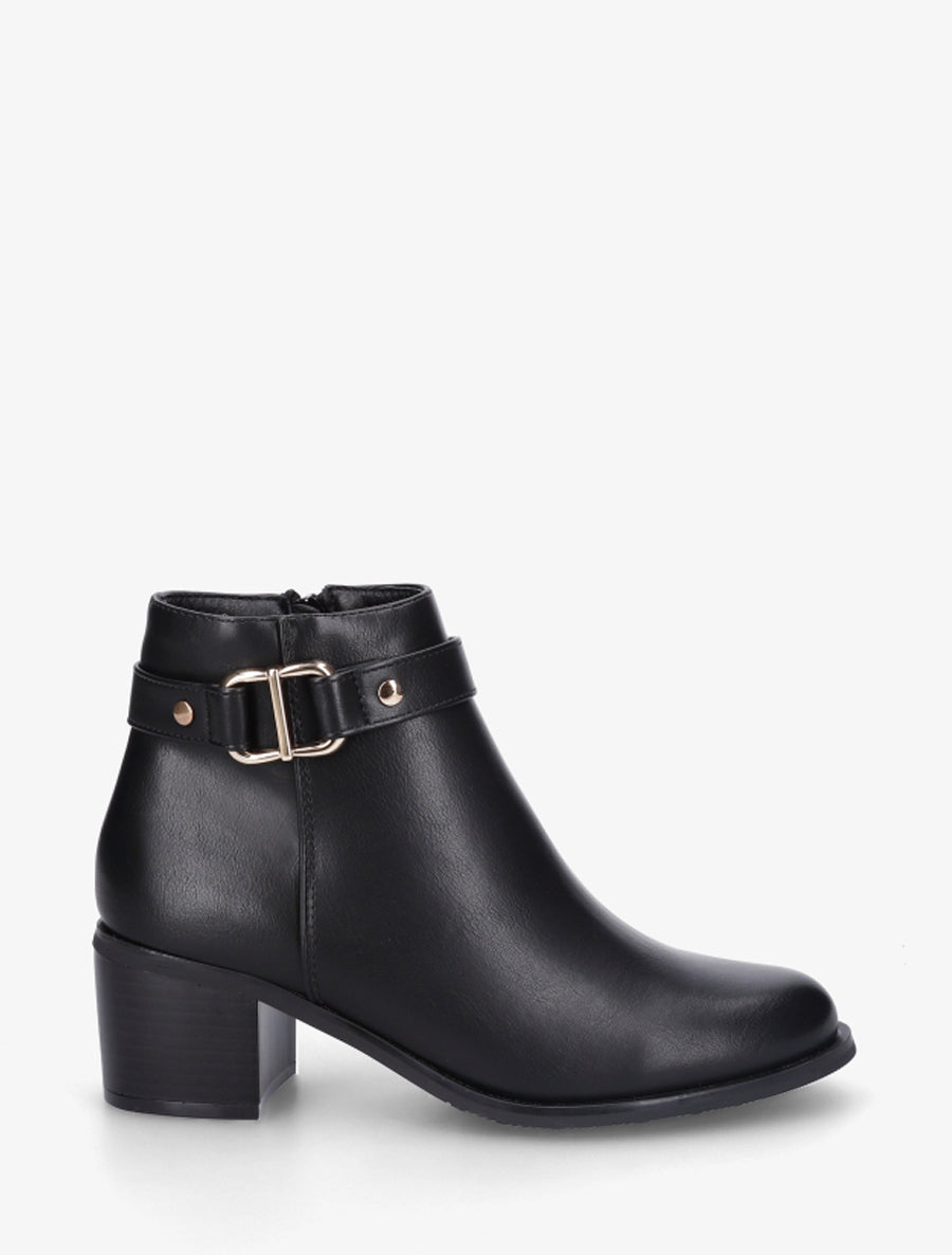 Bottines en simili à ceinturon décoratif - Noir - 1