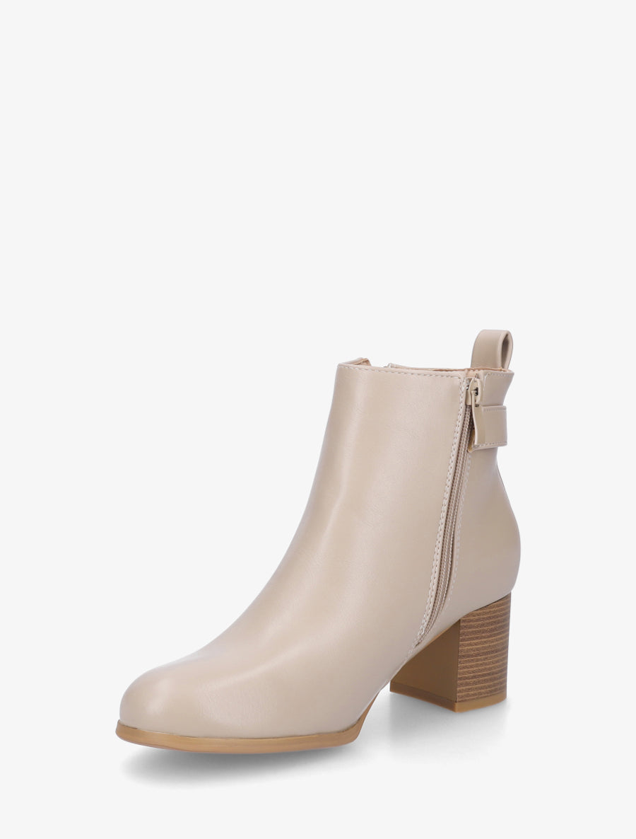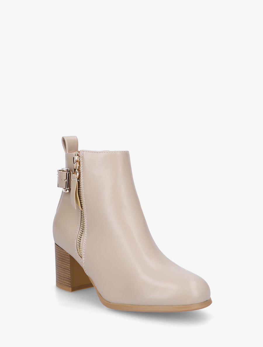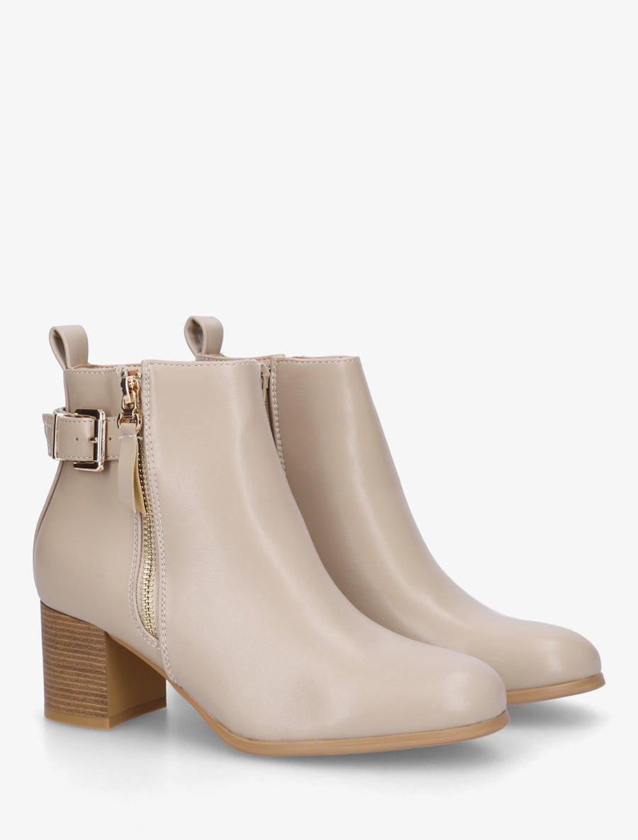 Ces bottines taupe allient confort et modernité avec leur talon bloc de 6 cm et leur tige de 11 cm. Le zip décoratif apporte une touche contemporaine, tandis que la fermeture zippée intérieure à la cheville assure un enfilage pratique. La sangle ajoute du caractère à l'ensemble. Leurs bouts ronds et leur cuir synthétique de qualité garantissent un port agréable tout au long de la journée. Parfaites pour sublimer vos tenues quotidiennes avec une allure urbaine et raffinée.