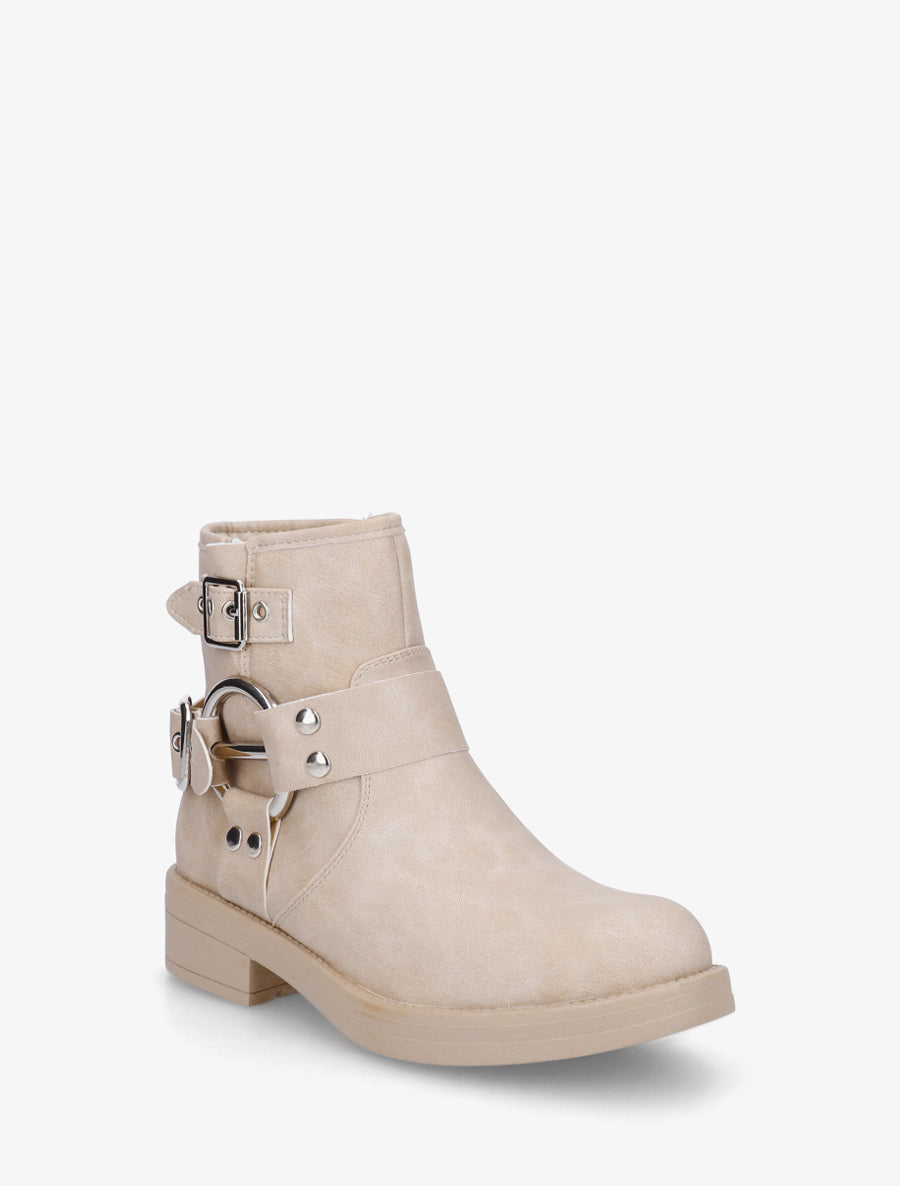 Bottines en suédine à boucle fantaisie - Beige - 1