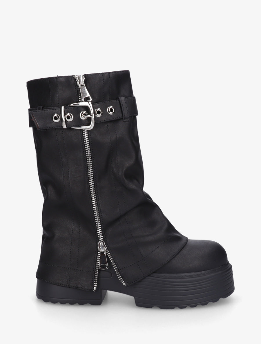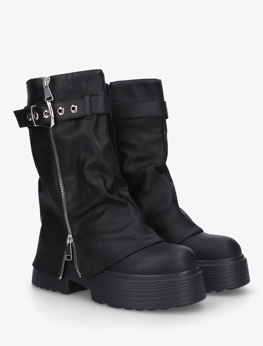 Bottines montantes à revers et zip décoratif - Noir - 1