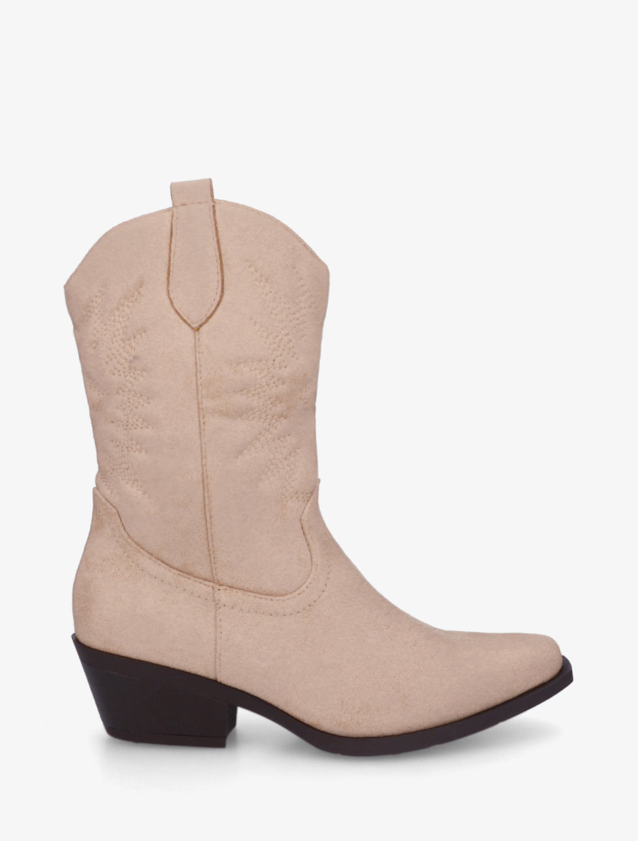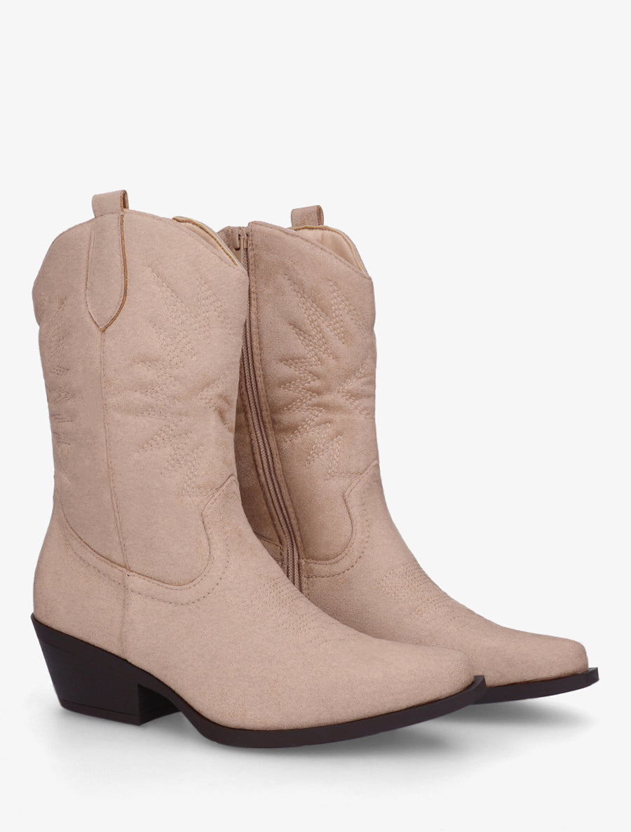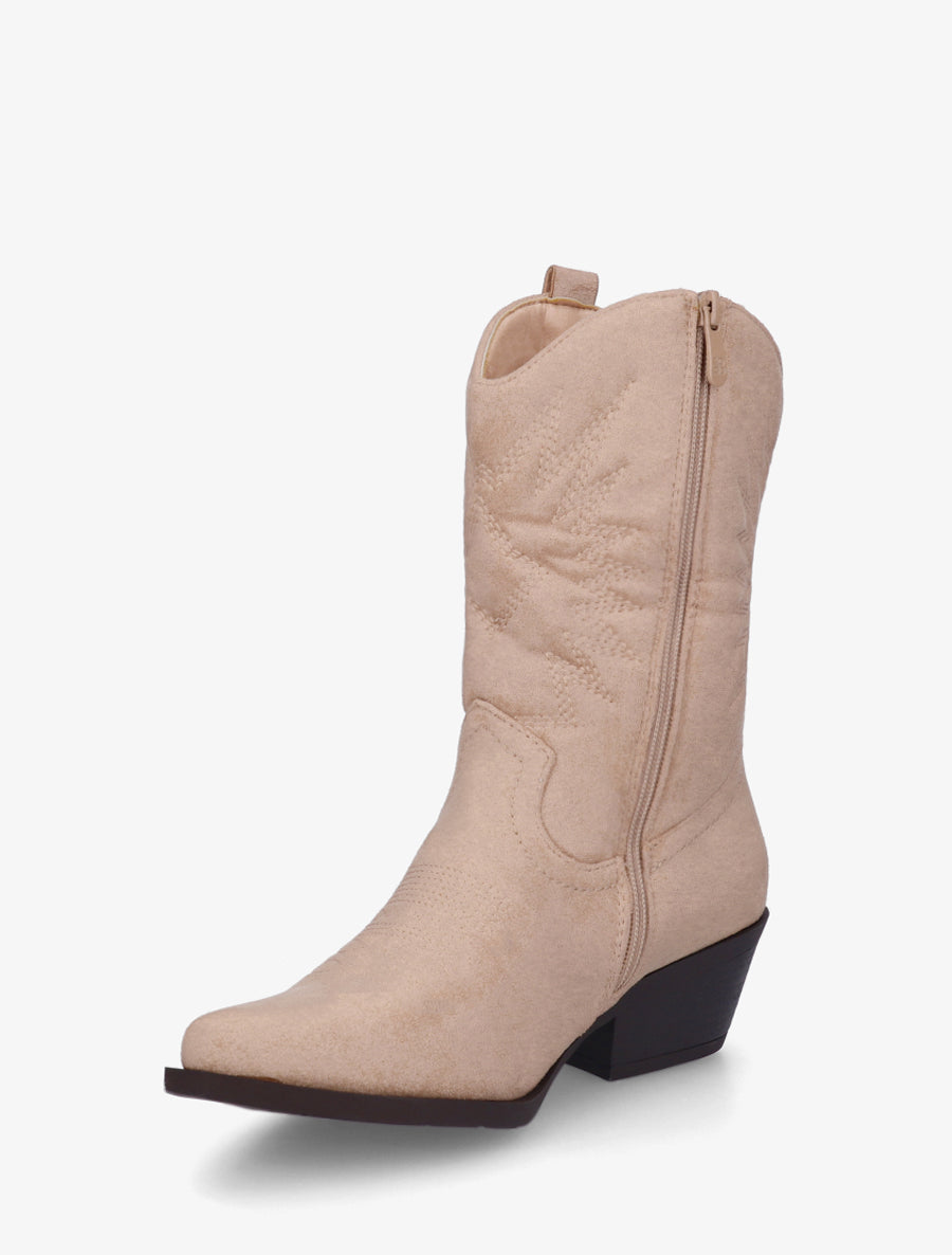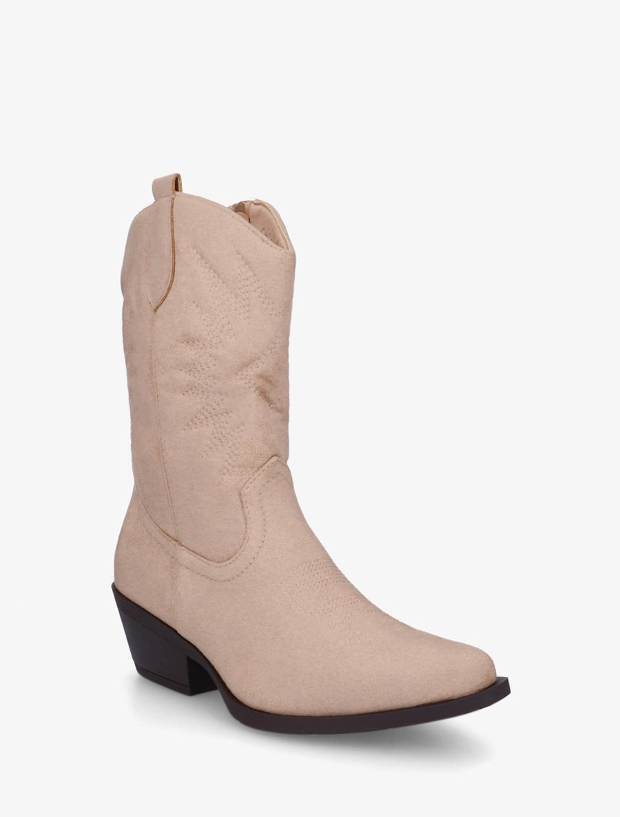 Ces bottines santiags en suédine beige incarnent l'esprit western moderne avec leurs surpiqûres authentiques et leurs bouts pointus. Dotées d'une tige de 18 cm et d'un talon bottier de 5 cm, elles offrent un confort optimal tout en affinant la silhouette. La fermeture zippée intérieure au niveau de la cheville facilite l'enfilage. Parfaites pour composer des looks casual-chic au quotidien, elles s'associent aussi bien avec un jean slim qu'une robe fluide. Leur finition suédine apporte une touche douce et raffinée à chaque tenue.