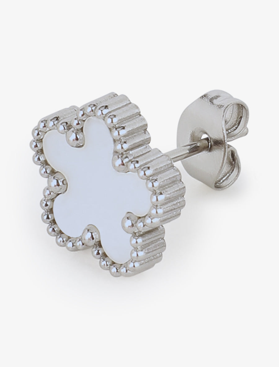 Sublimez votre quotidien avec ces puces d'oreilles en acier inoxydable ornées d'un délicat motif floral. La pierre blanche de 1 cm de diamètre apporte une touche lumineuse et raffinée à votre look. Le fermoir papillon assure un maintien sécurisé et confortable tout au long de la journée. Parfaites pour illuminer une tenue de travail ou accompagner une sortie décontractée, ces boucles d'oreilles compactes se portent en toute occasion. Leur matière noble garantit une résistance optimale dans le temps. Article ni repris ni échangé.