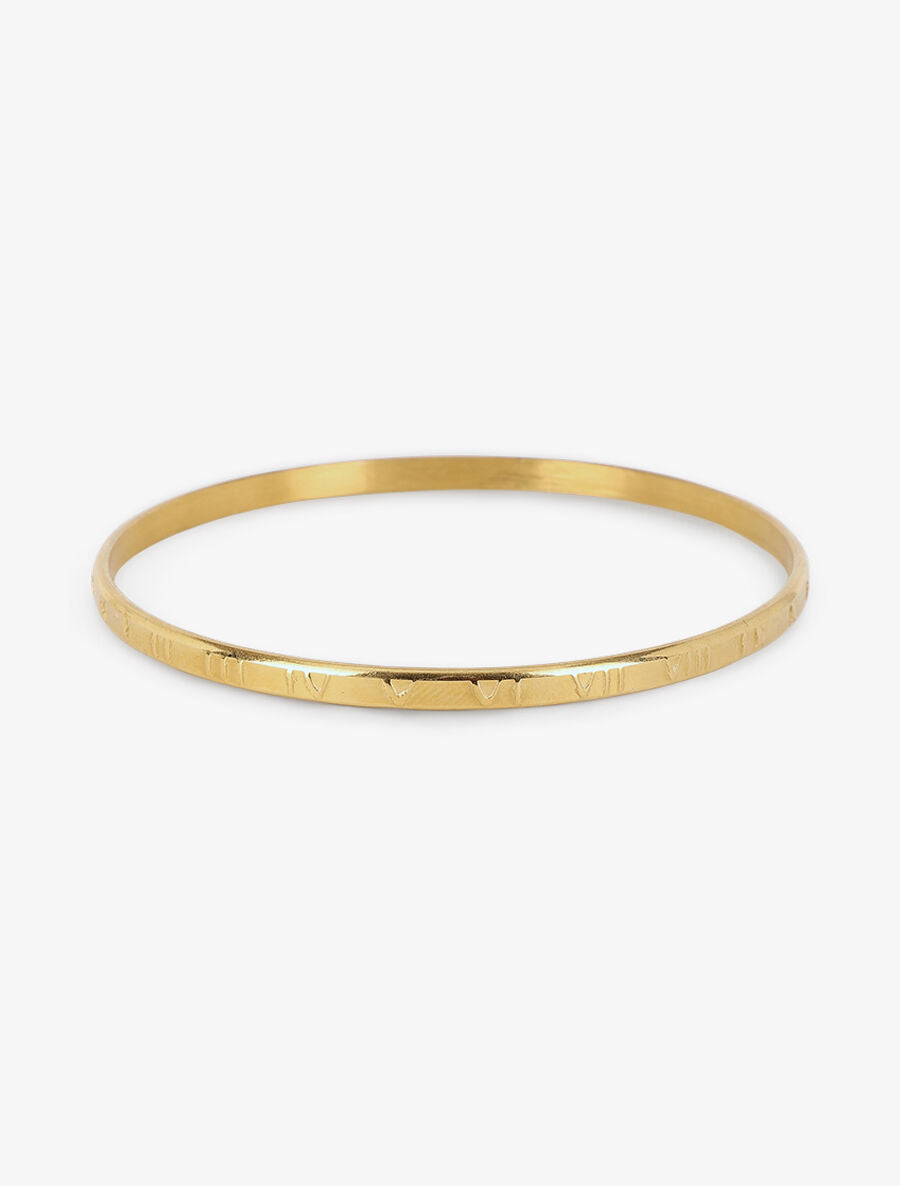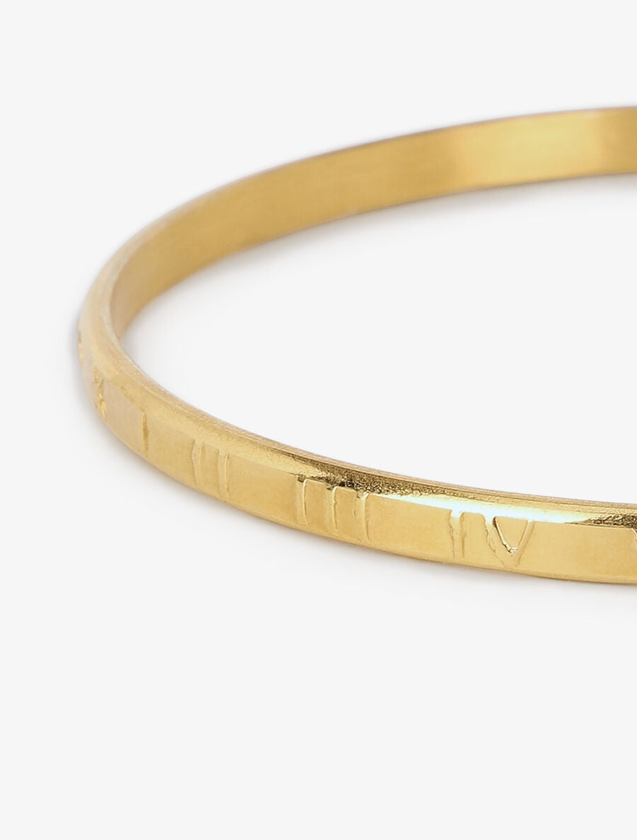 Ce bracelet jonc en acier inoxydable doré sublime votre poignet avec raffinement. Orné de chiffres romains gravés sur toute sa surface, il apporte une touche intemporelle à vos tenues. Son design à enfiler facilite le port quotidien tout en garantissant un maintien optimal. La finition dorée lumineuse s'accorde parfaitement avec vos autres bijoux. Parfait pour accompagner vos journées au bureau comme vos sorties du week-end, ce jonc devient rapidement un incontournable de votre collection.
