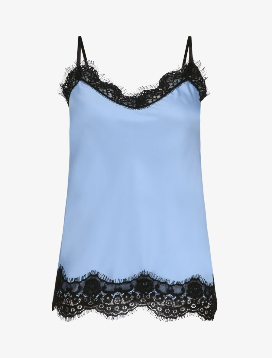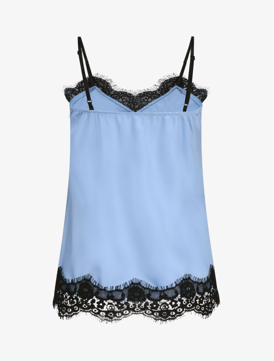 Caraco droit satiné à col et bord en dentelle - Bleu ciel - 3