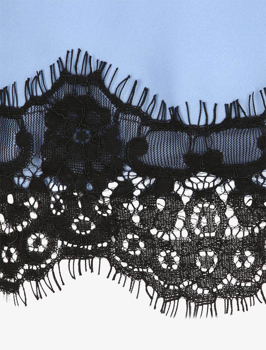 Caraco droit satiné à col et bord en dentelle - Bleu ciel - 5