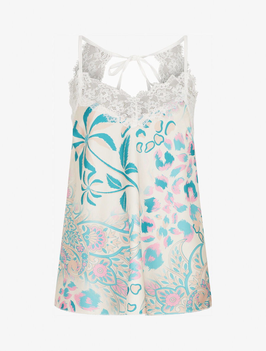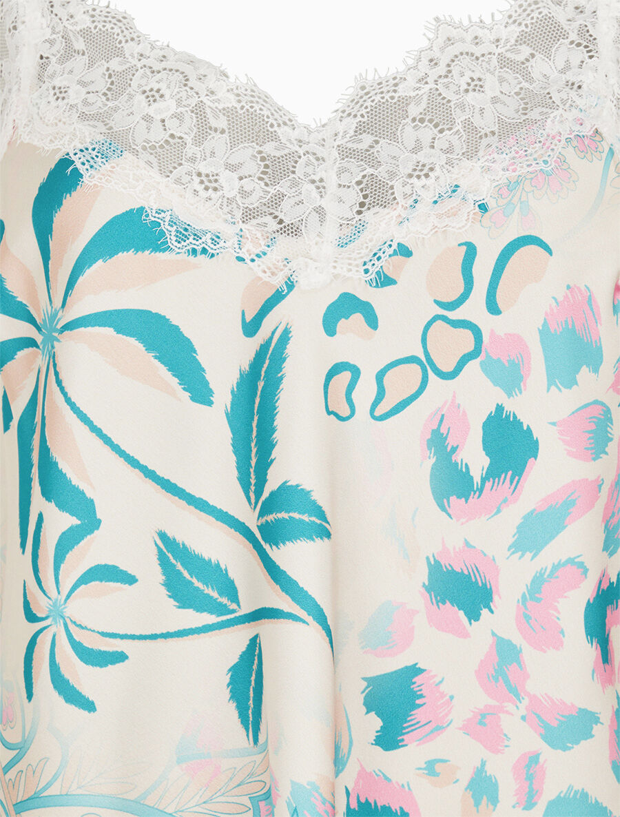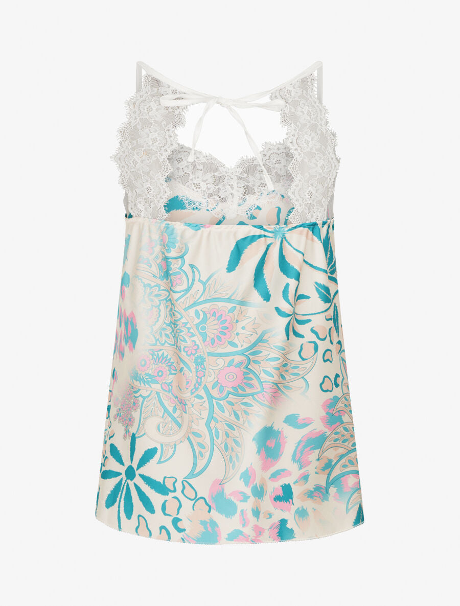 Succombez à ce caraco fluide en tissu satiné qui allie raffinement et féminité. Sa coupe droite épouse délicatement la silhouette tandis que le col V orné de dentelle apporte une touche sophistiquée. Le dos en dentelle avec liens à nouer offre un détail séduisant et ajustable. Les fines bretelles et l'imprimé foulard subliment cette pièce fabriquée en Italie. Parfait pour vos soirées estivales ou sous un blazer pour un look travaillé, ce caraco deviendra rapidement un incontournable de votre garde-robe luxembourgeoise.