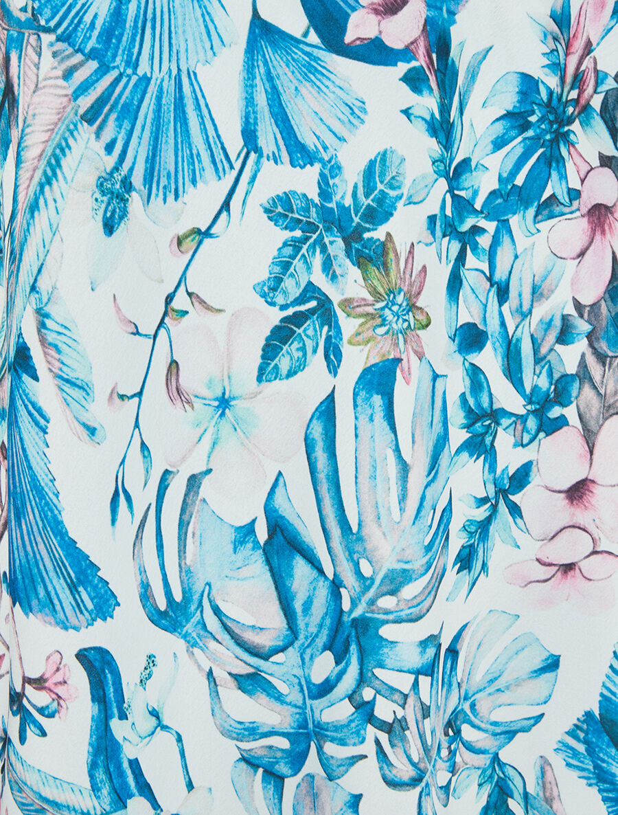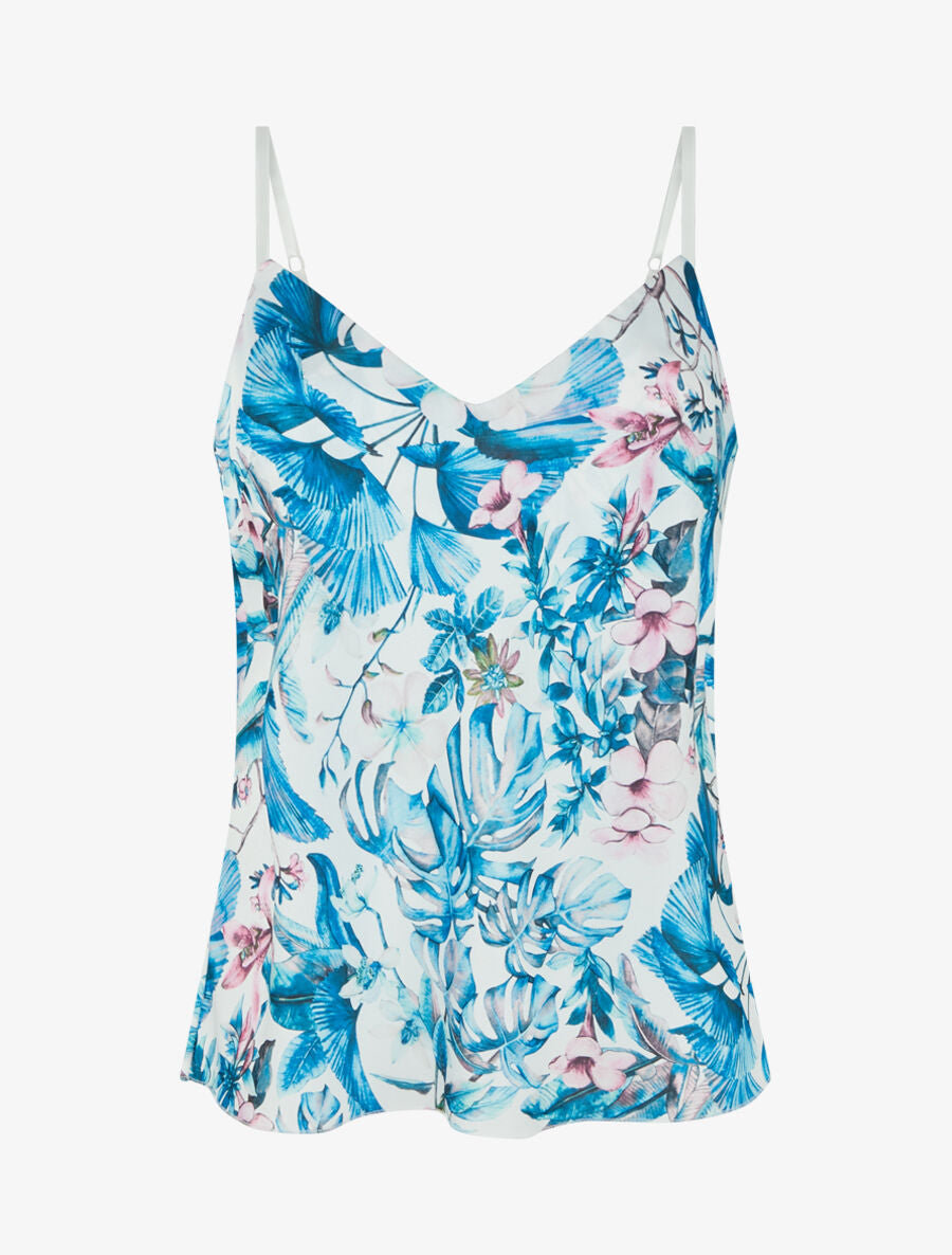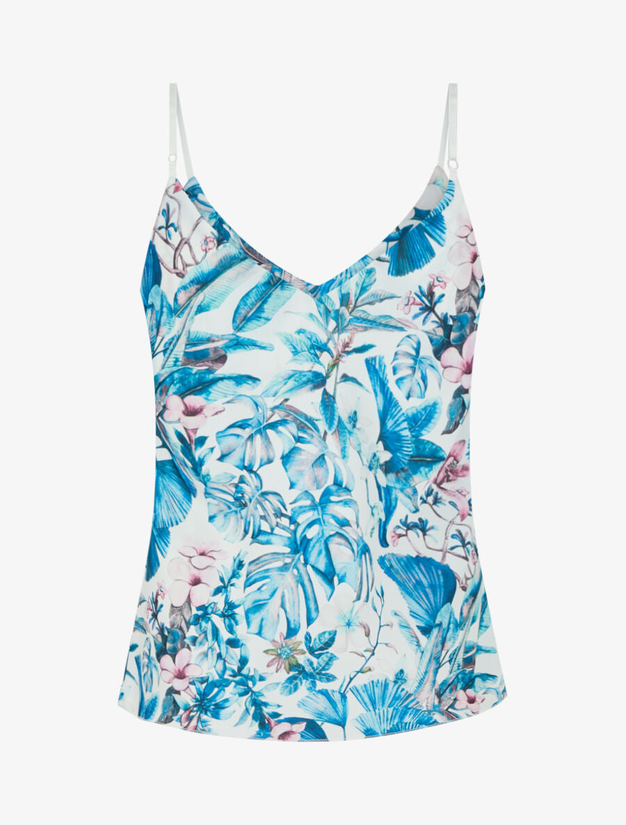 Craquez pour ce caraco satiné qui sublime votre silhouette avec son imprimé tropical raffiné. Sa coupe droite et son encolure en V flatteuse apportent une touche féminine à votre garde-robe. Les fines bretelles ajustables garantissent un ajustement parfait et un confort optimal. Confectionné en Italie avec un savoir-faire d'exception, ce caraco en polyester satiné se distingue par sa qualité irréprochable. Idéal pour vos soirées estivales ou pour apporter une note exotique à vos tenues décontractées, il deviendra rapidement votre allié mode incontournable.
