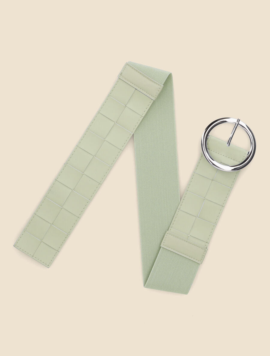 Ceinture élastiquée effet tressé à boucle ronde - Vert amande - 2