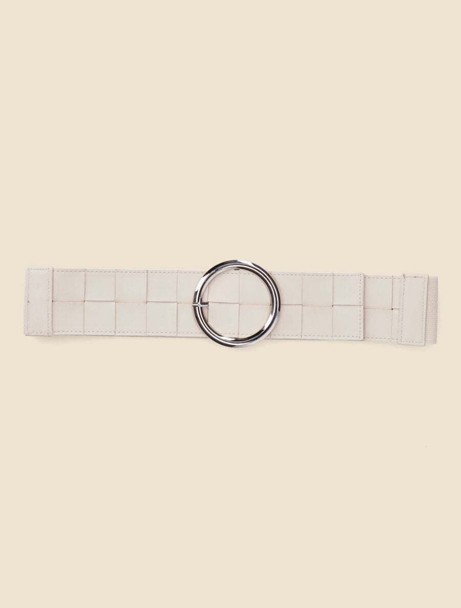 Ceinture élastiquée effet tressé à boucle ronde - Beige - 1