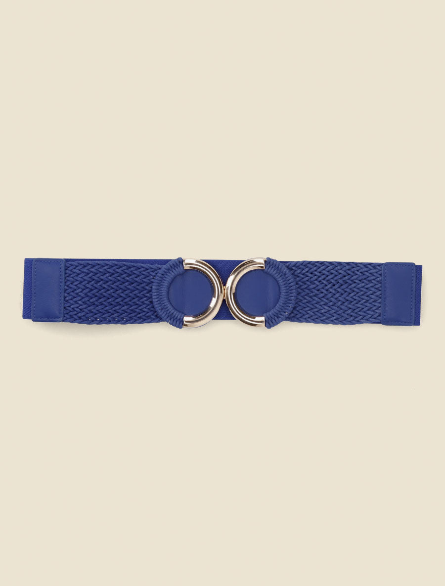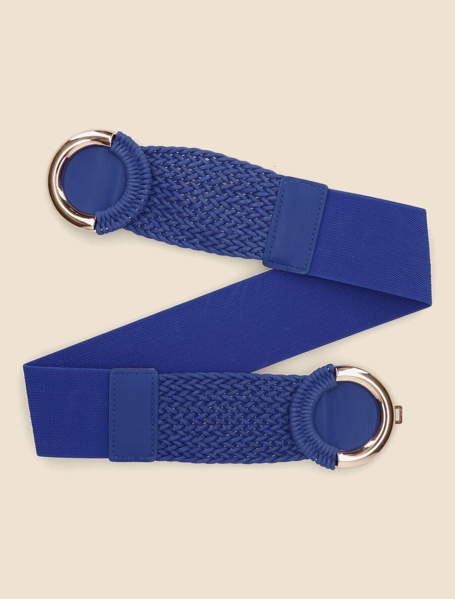 Ceinture élastiquée macramé double anneaux - Bleu électrique
