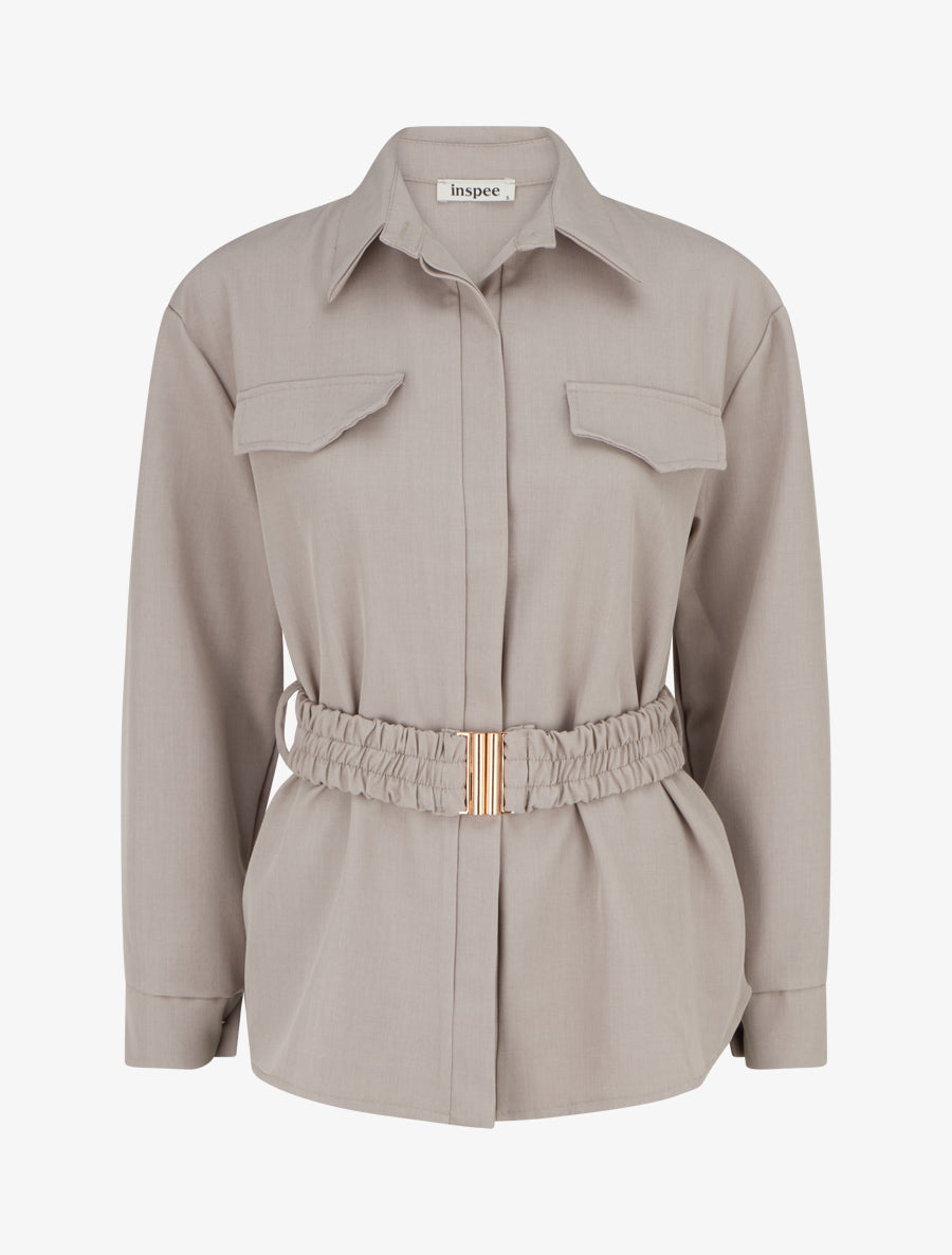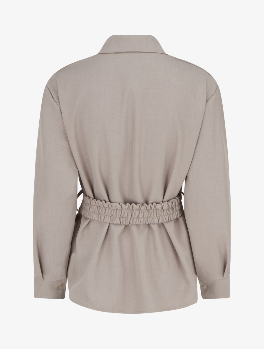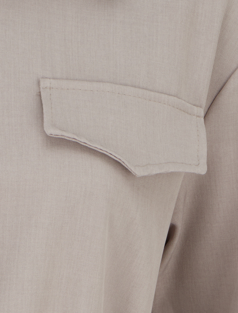Chemisier fluide col à pied ceinturé - Taupe clair