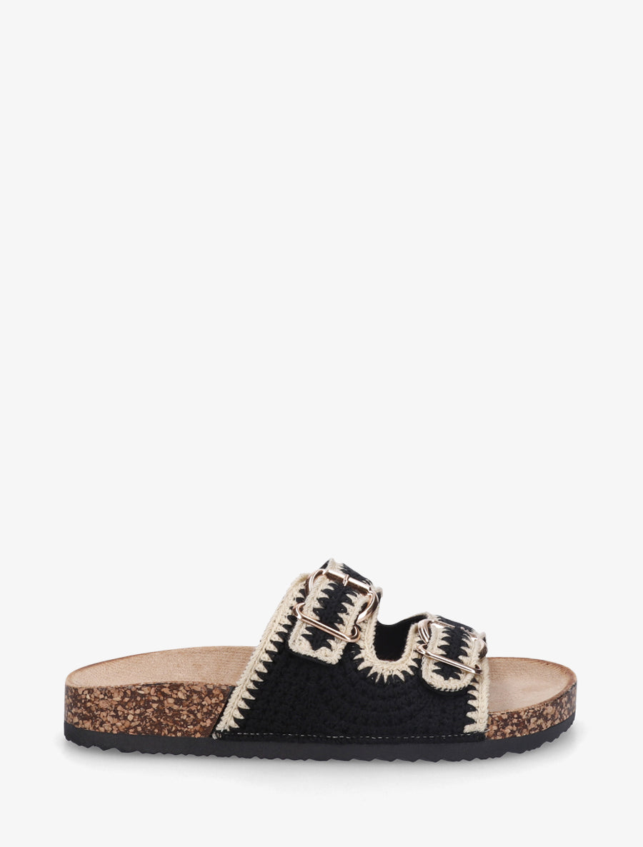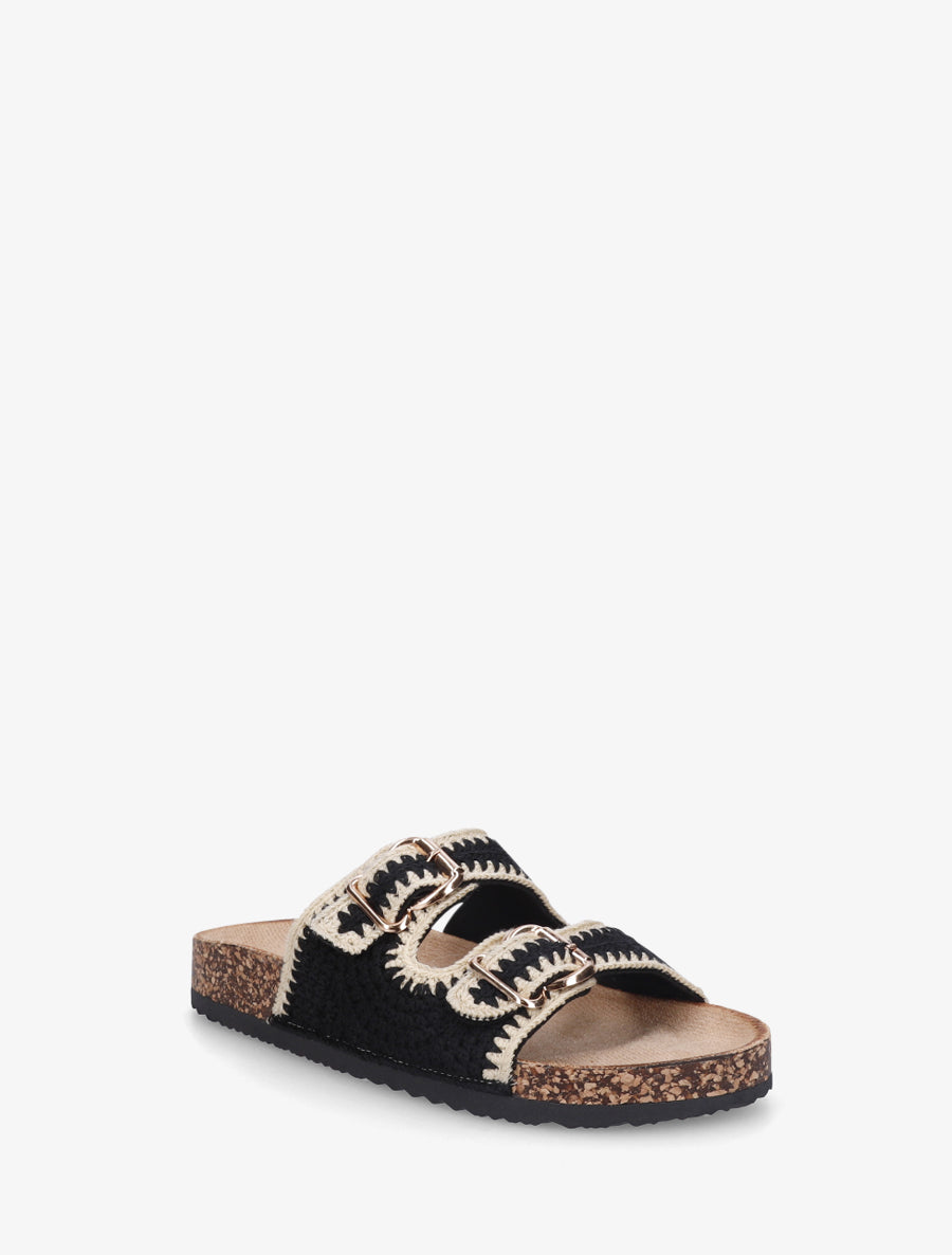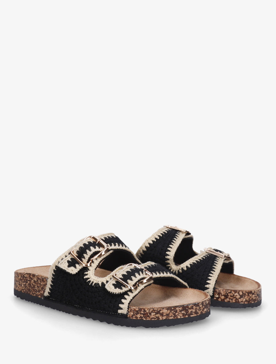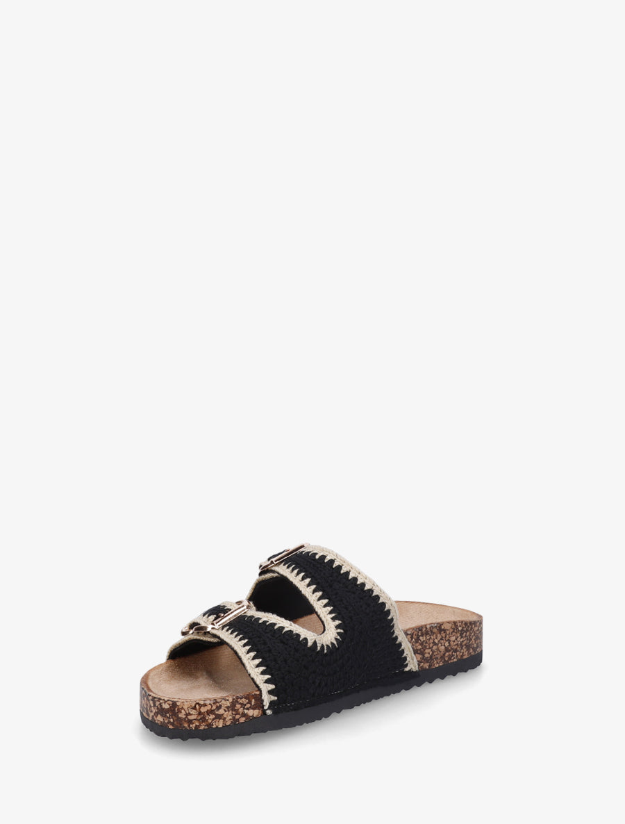 Claquettes en crochet à double boucles - Noir - 2