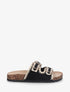 Claquettes tissu double brides à boucles - Noir