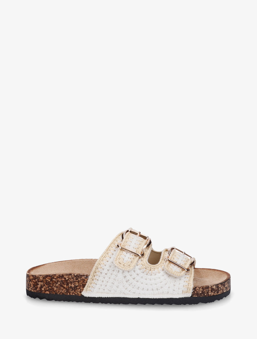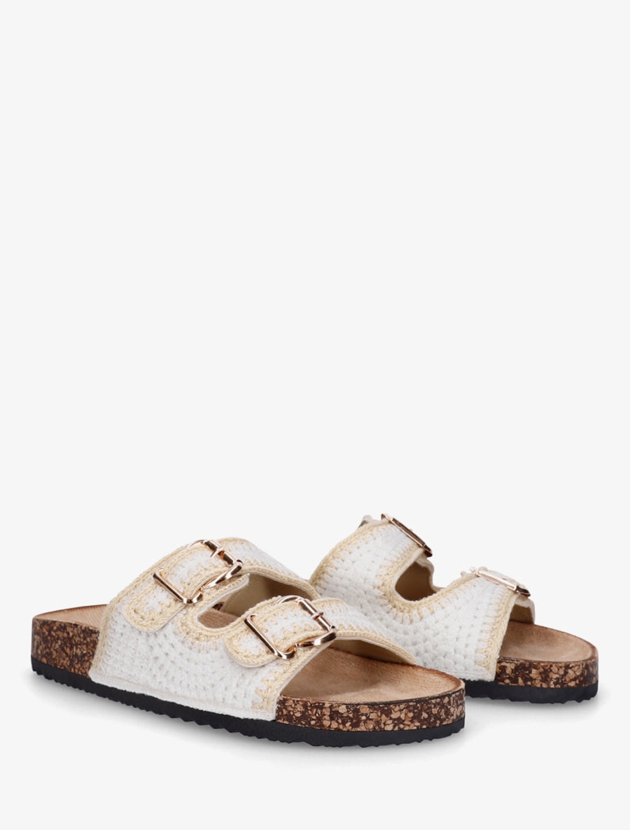 Adoptez le style décontracté avec ces claquettes en tissu blanc ornées de double brides élégantes. Les boucles décoratives et coutures apparentes apportent une touche raffinée à ce modèle estival. Leur semelle plate effet liège de 3 cm assure confort et stabilité tout au long de la journée. Avec leurs bouts ouverts, ces claquettes sont parfaites pour vos sorties ensoleillées et moments de détente. Un choix idéal pour compléter vos tenues estivales avec une note moderne et confortable.