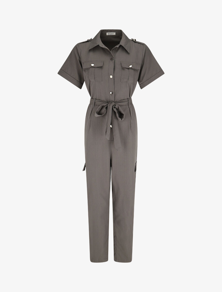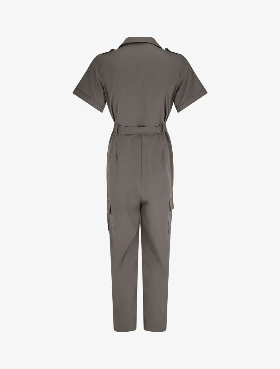 Combinaison droite col montant ceinturée - Kaki gris