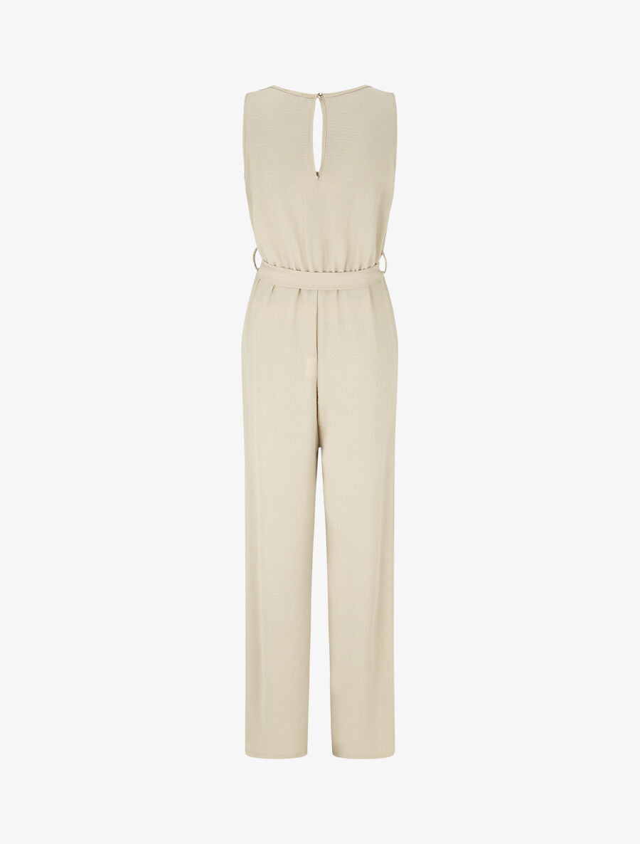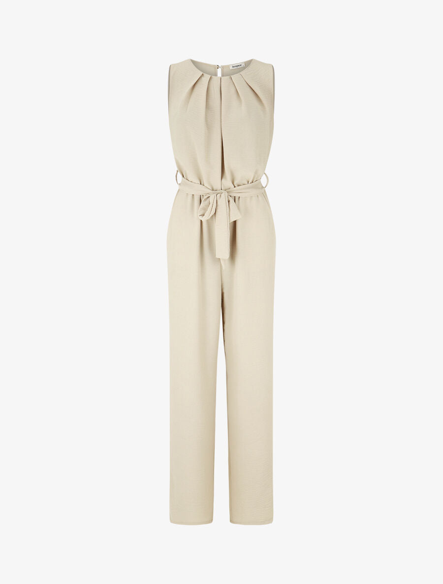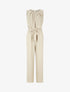 Adoptez cette combinaison unie à la coupe droite, confectionnée avec soin en Italie. Son encolure ronde effet plissé et sa nuque boutonnée apportent une touche raffinée, tandis que la taille élastiquée assure un confort optimal. La ceinture à nouer permet d'ajuster la silhouette selon vos envies. Deux poches pratiques complètent ce modèle sans manches, parfait pour vos journées estivales comme pour vos soirées décontractées. Une pièce polyvalente qui deviendra rapidement indispensable dans votre garde-robe.