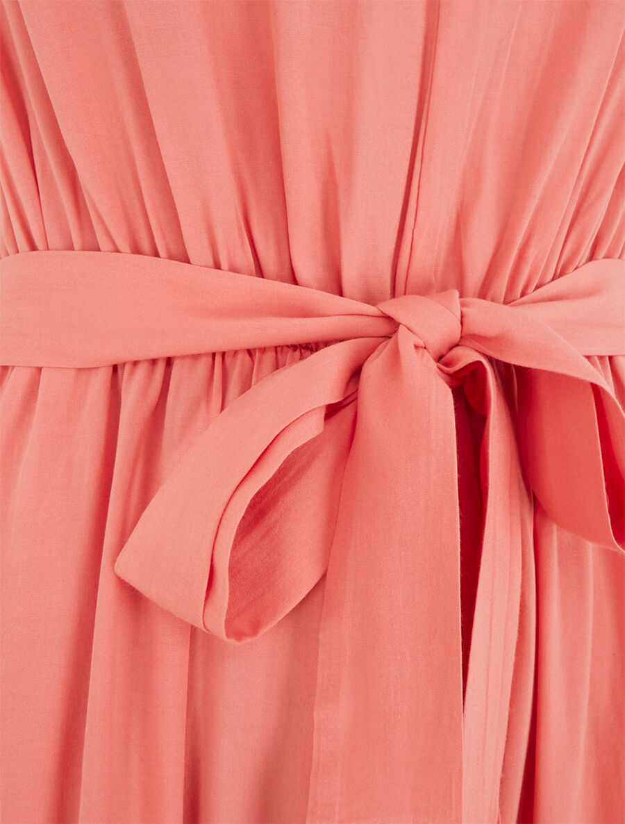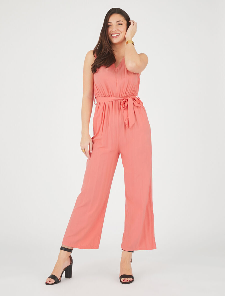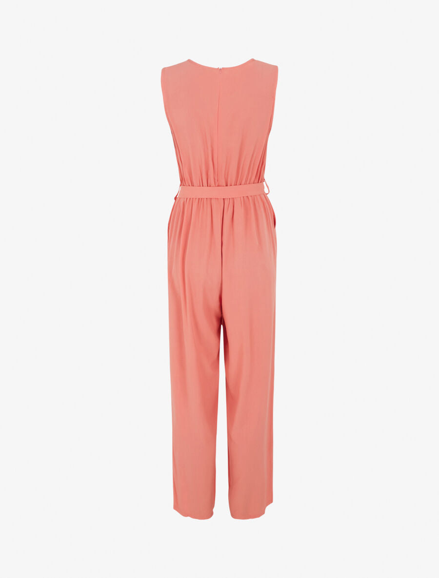 Découvrez cette combinaison fluide en corail qui allie confort et féminité. Son encolure en V flatteuse et sa coupe sans manches offrent une silhouette élégante. La taille élastiquée assure un ajustement parfait, tandis que la ceinture à nouer permet de marquer la taille selon vos envies. Pratique avec ses deux poches et sa fermeture zippée au dos, cette pièce en viscose légère vous accompagne avec style lors de vos journées estivales ou soirées décontractées.